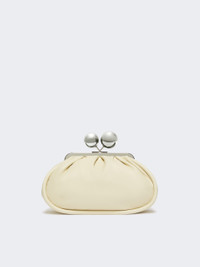 DETAILS Medium Pasticcino bag - a remarkable clutch that adds a personal and captivating touch to your daily style. Soft, lightweight nappa sheepskin bag Striped fabric lining and maxi piping on the trim Internal patch pocket with personalized label Short leather shoulder strap and long chain strap with leather shoulder pad Double attachment for shoulder straps and charm, positioned at the top or sides Weekend Max Mara customised fastening with large metal spheres Measurements: 31 x 13 x 21 cm. COMPOSITION AND CARE Handbag in ram; lining in 100%polyester. Distributed by Max Mara S.r.l., registered office in Reggio Emilia (Italy), Via Giulia Maramotti 4, 42124 (IT)