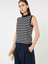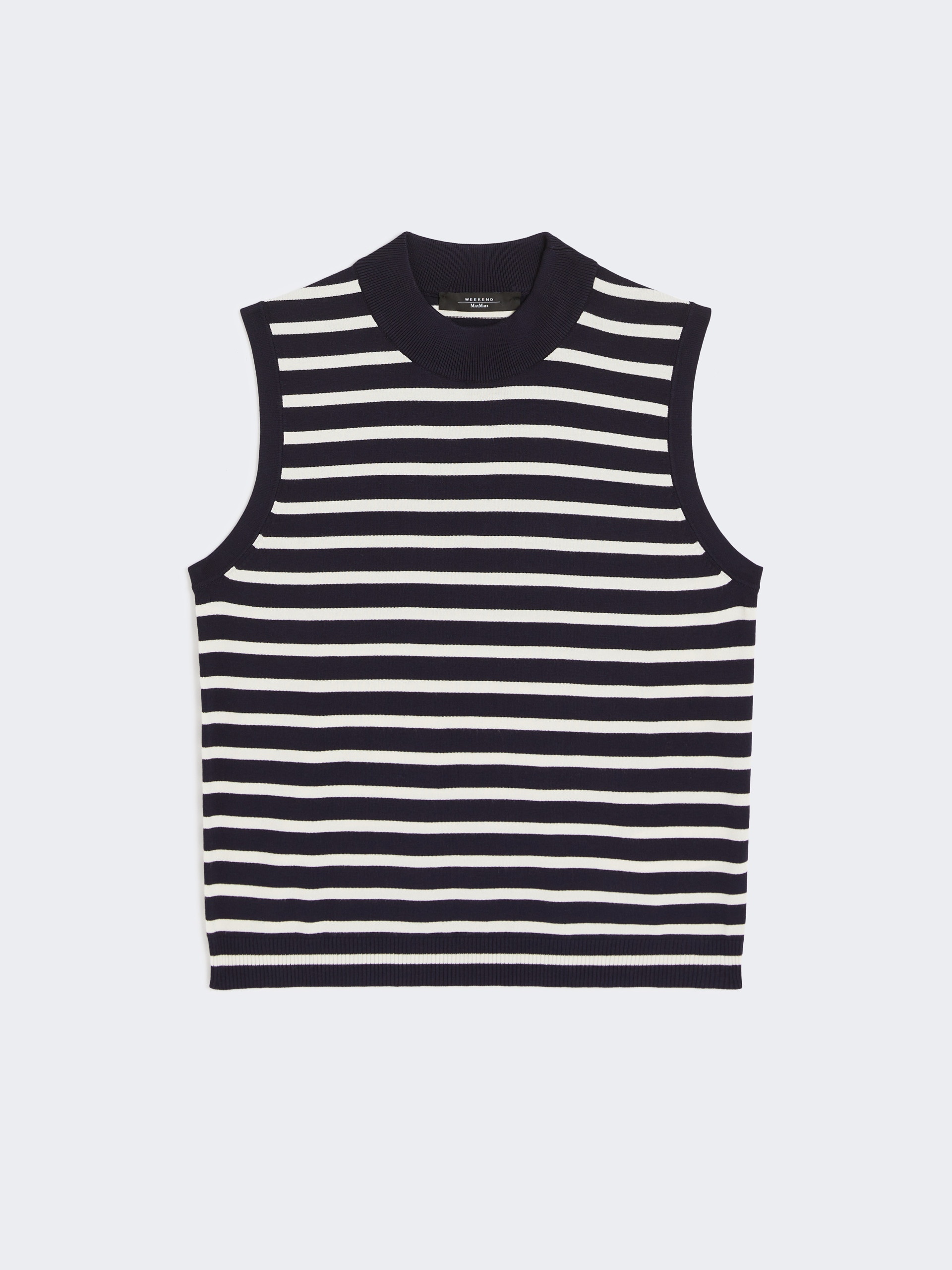 DETAILS Sleeveless top with a regular fit and length. Stretch viscose yarn top Straight fit Rib-knit raised neck Straight hem and a rib-knit trim COMPOSITION AND CARE 77% viscose, 23% polyester. Hand wash cold; do not bleach; do not tumble dry; flat drying in the shade; cool iron; professionally dry clean perchloroethylene - mild process; do not wet clean.; iron with a cloth between.; using neutral detergent. Distributed by Max Mara S.r.l., registered office in Reggio Emilia (Italy), Via Giulia Maramotti 4, 42124 (IT)