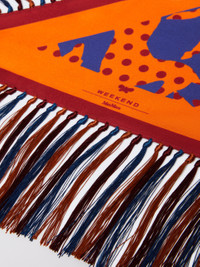 DETAILS Diamond-shaped scarf featuring an all-over version of the collection’s "Spain"-themed print. Pure silk twill scarf Hand-knotted coloured fringes at the trims Size: 183 x 72 cm COMPOSITION AND CARE Fabric 100% silk; with details in 100% viscose. Do not wash; do not bleach; do not tumble dry; cool iron; professionally dry clean perchloroethylene - mild process; do not wet clean.; please restore fringes after washing. Distributed by Max Mara S.r.l., registered office in Reggio Emilia (Italy), Via Giulia Maramotti 4, 42124 (IT)