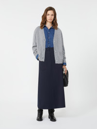 DETAILS Loose-fitting cardigan with a plain-knit finish. Pure cashmere yarn cardigan V neck Long sleeves with dropped shoulders Front fastening with three mother-of-pearl buttons Pockets at the front Ribbed trim COMPOSITION AND CARE 100% cashmere. Hand wash cold (40°c max); do not bleach; do not tumble dry; flat drying in the shade; cool iron; professionally dry clean perchloroethylene - mild process; do not wet clean.; using neutral detergent.; iron with a cloth between.; contains non-textile parts of animal origin. Distributed by Max Mara S.r.l., registered office in Reggio Emilia (Italy), Via Giulia Maramotti 4, 42124 (IT)