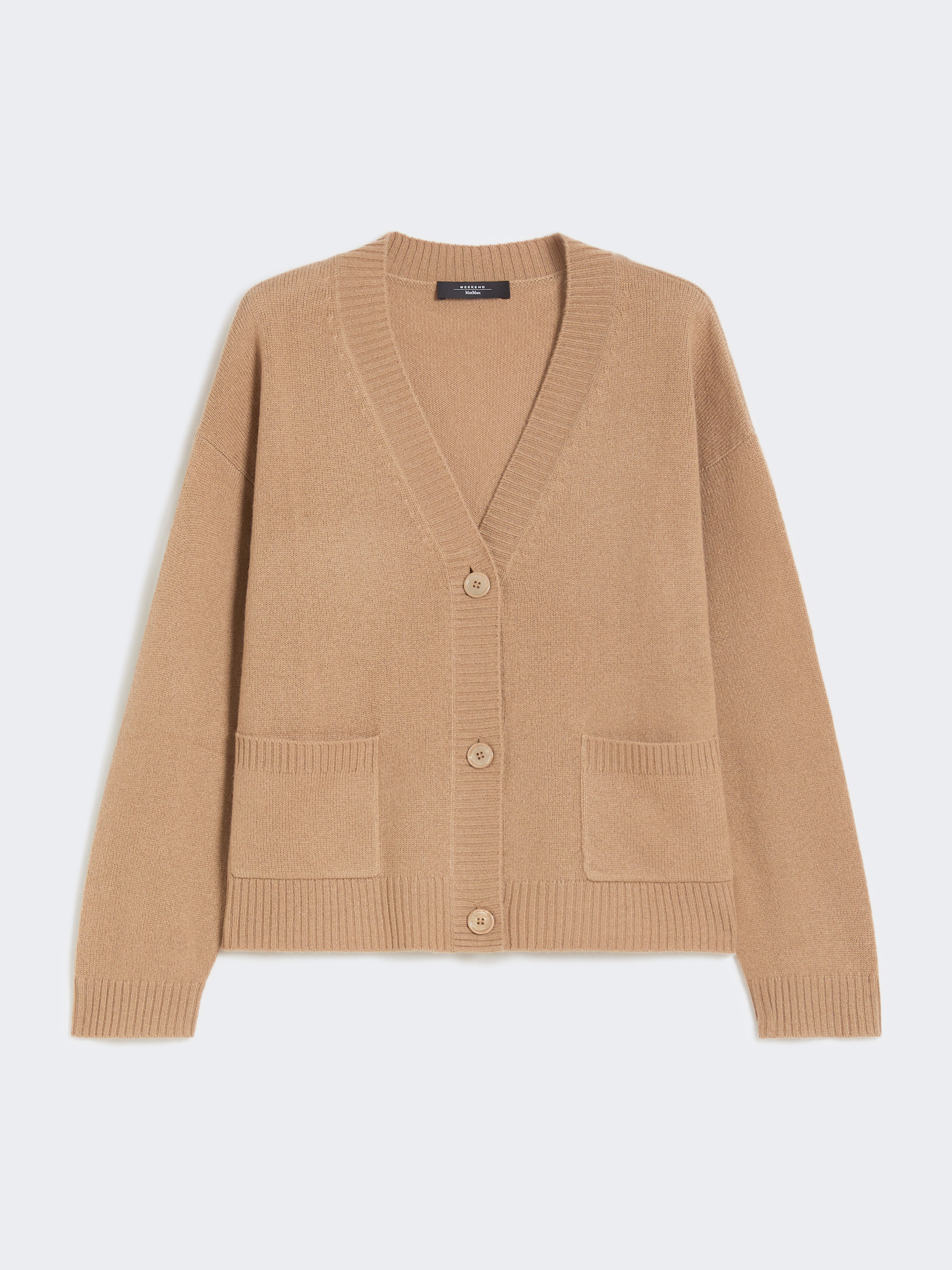 DETAILS Loose-fitting cardigan with a plain-knit finish. Pure cashmere yarn cardigan V neck Long sleeves with dropped shoulders Front fastening with three mother-of-pearl buttons Pockets at the front Ribbed trim COMPOSITION AND CARE 100% cashmere. Hand wash cold (40°c max); do not bleach; do not tumble dry; flat drying in the shade; cool iron; professionally dry clean perchloroethylene - mild process; do not wet clean.; using neutral detergent.; iron with a cloth between.; contains non-textile parts of animal origin. Distributed by Max Mara S.r.l., registered office in Reggio Emilia (Italy), Via Giulia Maramotti 4, 42124 (IT)