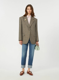 DETAILS Single-breasted mannish-style blazer featuring a classic Glen plaid pattern. - Blazer in patterned pure wool twill fabric - Oversized fit with a central rear slit - Lapel collar - Set-in sleeves with buttoned cuffs - Single-button front fastening - Breast pocket and flap welt pockets at the side - Lined model COMPOSITION AND CARE Fabric 100% virgin wool; lining 50% acetate, 50% viscose; lining 2 51% acetate, 49% viscose. Do not wash; do not bleach; do not tumble dry; cool iron; professionally dry clean perchloroethylene - mild process; do not wet clean.; wash the garment while it is fastened.; contains non-textile parts of animal origin. Distributed by Max Mara S.r.l., registered office in Reggio Emilia (Italy), Via Giulia Maramotti 4, 42124 (IT) Collection: Weekend Max Mara Product code: 5041046106001 - WKDMAGMA