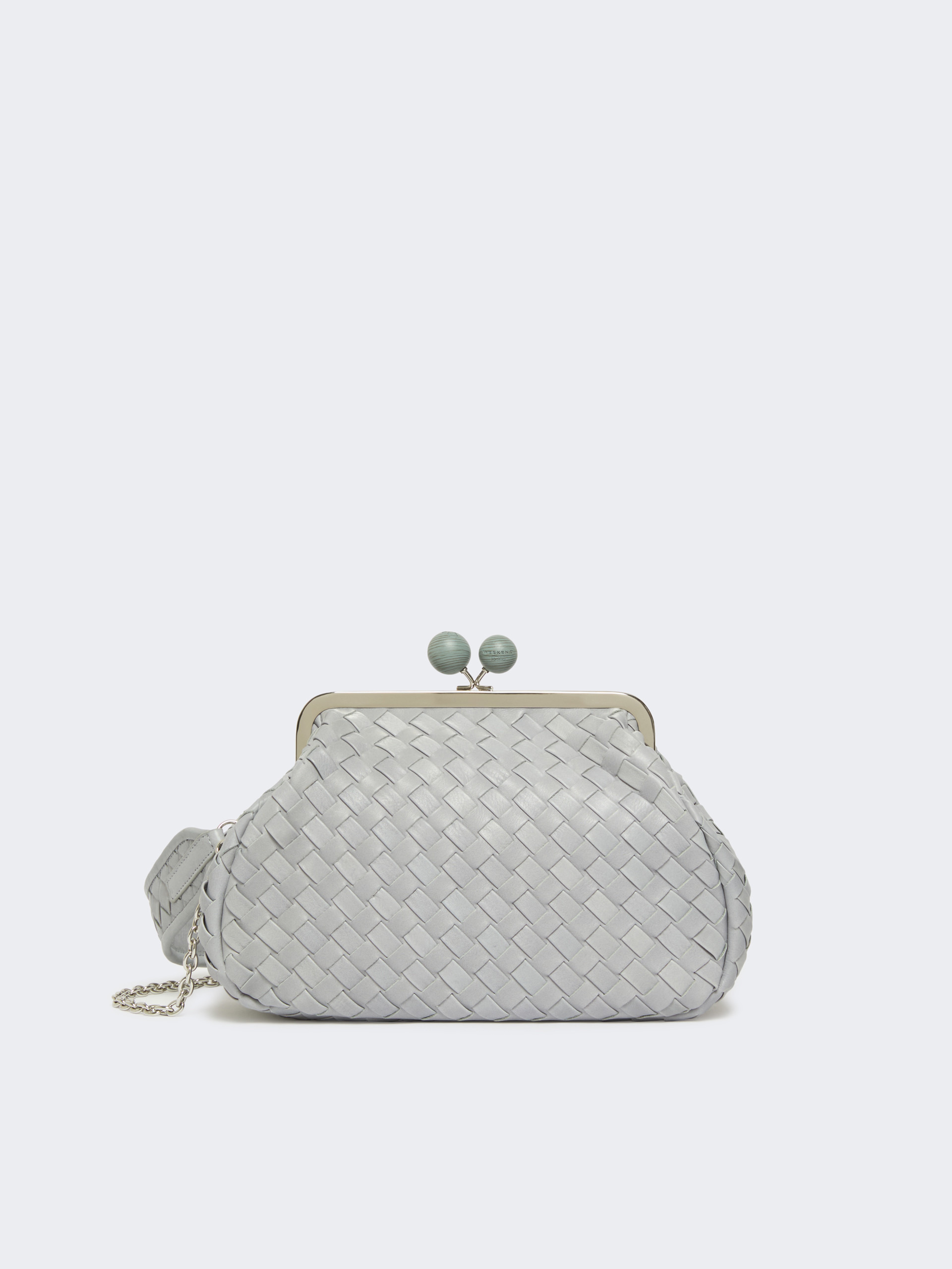 DETAILS The medium Pasticcino Bag is the awesome clutch that will add a personal, captivating touch to your everyday style. Woven leather bag with a structured design Striped fabric lining Patch inner pocket with branded label detail Short woven leather shoulder strap and long chain strap with shoulder pad detail Removable shoulder straps with a double attachment on the side and at the top Metal fastening with branded wood-look spheres Size: 31 x 13 x 21 cm. COMPOSITION AND CARE Handbag in cattle; lining in 100%polyester. Distributed by Max Mara S.r.l., registered office in Reggio Emilia (Italy), Via Giulia Maramotti 4, 42124 (IT)