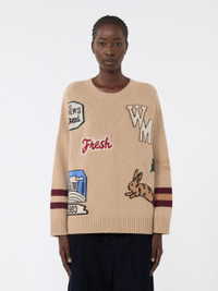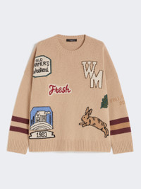 DETAILS Oversized jumper decorated with an intarsia knit with collection designs on the front and sleeves. Pure wool yarn jumper Wide lines and regular length Crew neck Long sleeves with dropped shoulders Ribbed edges COMPOSITION AND CARE 100% virgin wool. Hand wash cold (40°c max); do not bleach; do not tumble dry; flat drying in the shade; cool iron; professionally dry clean perchloroethylene - mild process; do not wet clean.; iron with a cloth between.; using neutral detergent. Distributed by Max Mara S.r.l., registered office in Reggio Emilia (Italy), Via Giulia Maramotti 4, 42124 (IT)