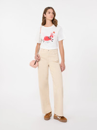 DETAILS Basic T-shirt customised with print and embroidered detail on the front. - Pure cotton jersey T-shirt - Straight fit with side slits - Rib-knit crew neckline - Short set-in sleeves - Small embroidered butterfly logo detail on the back of the neck COMPOSITION AND CARE Jersey fabric 100% cotton; - exclusive of decoration. Hand wash cold (40°c max); do not bleach; do not tumble dry; flat drying in the shade; cool iron; do not dry clean; do not wet clean.; iron with a cloth between.; using neutral detergent.; don’t rub.; turn the articles inside out before washing.; to be ironed on reverse.; do not iron the decoration. Distributed by Max Mara S.r.l., registered office in Reggio Emilia (Italy), Via Giulia Maramotti 4, 42124 (IT) Collection: Weekend Max Mara Product code: 5971046106003 - WKDWEST
