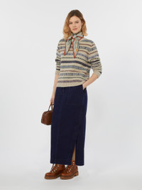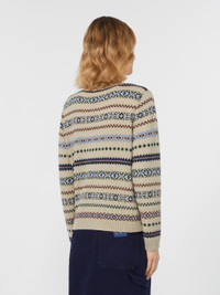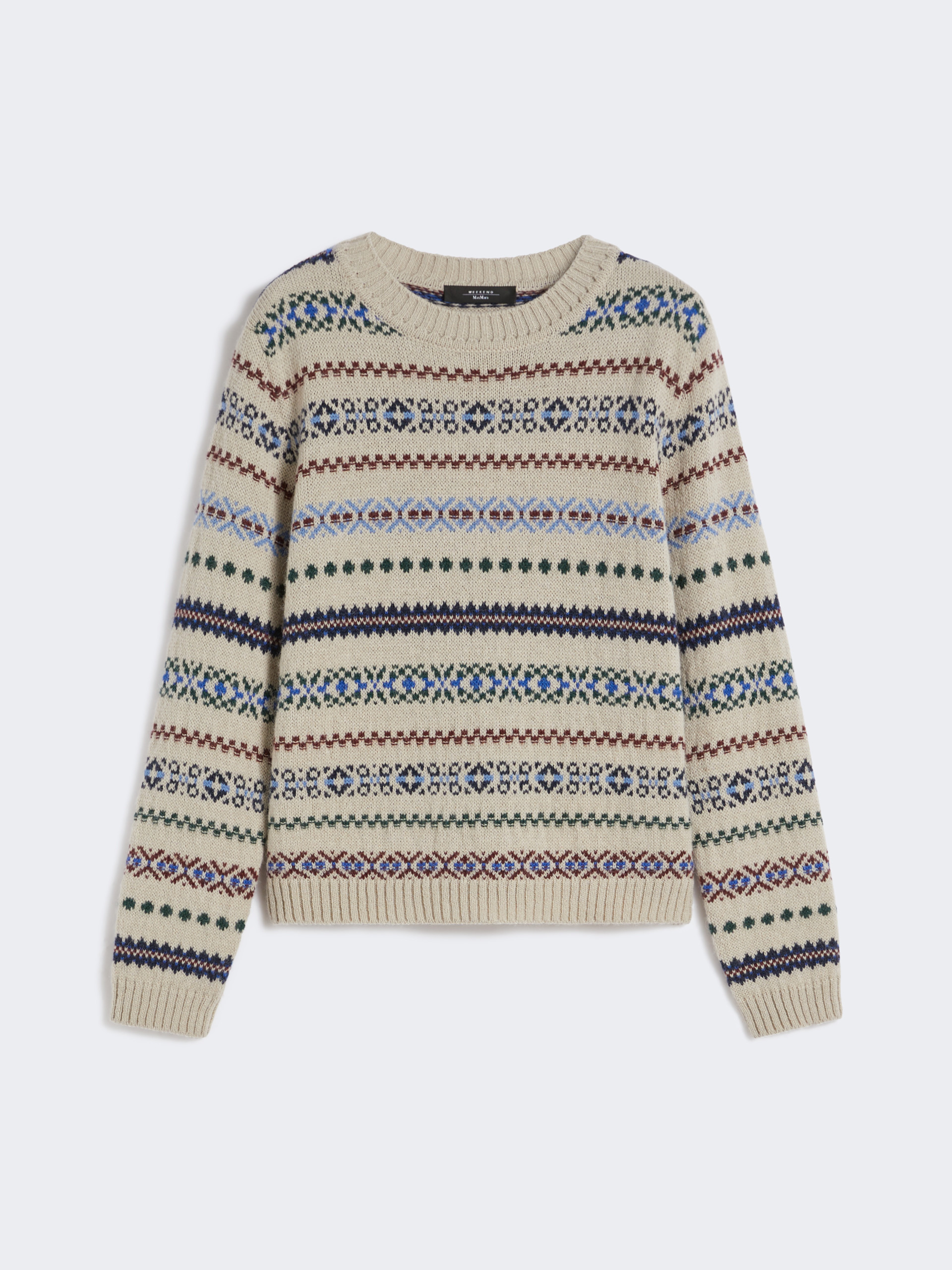 DETAILS Crew-neck jumper, featuring a jacquard knit that creates a contrasting all-over pattern. Wool and alpaca knit jumper Regular volume and medium length Long set-in sleeves Ribbed trim COMPOSITION AND CARE 45% acrylic, 40% alpaca, 15% wool. Hand wash cold (40°c max); do not bleach; do not tumble dry; flat drying in the shade; cool iron; professionally dry clean perchloroethylene - mild process; do not wet clean.; iron with a cloth between.; using neutral detergent. Distributed by Max Mara S.r.l., registered office in Reggio Emilia (Italy), Via Giulia Maramotti 4, 42124 (IT)