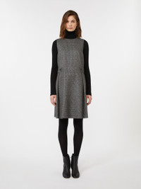 DETAILS Short sleeveless dress with pleated pattern on the side and a martingale at the waist back with buttons on the sides. Viscose-blend jersey dress Flared Crew neck Lined COMPOSITION AND CARE Outer fabric 77% viscose, 22% polyester, 1% elastane; inner fabric 100% polyester; lining 95% polyester, 5% elastane. Do not wash; do not bleach; do not tumble dry; cool iron; professionally dry clean perchloroethylene - mild process; do not wet clean.; iron with a cloth between.; protect buttons before washing. Distributed by Max Mara S.r.l., registered office in Reggio Emilia (Italy), Via Giulia Maramotti 4, 42124 (IT)