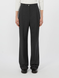 DETAILS Long trousers featuring a wide-leg silhouette and darts at the waist on the front. Patterned pure wool canvas trousers Wide leg Fastening with a wide waistband tab, zip fly and button Slant pockets at the sides Trouser crease and belt loops at the waist COMPOSITION AND CARE 100% virgin wool. Do not wash; do not bleach; do not tumble dry; cool iron; professionally dry clean perchloroethylene - mild process; do not wet clean.; wash the garment while it is fastened.; turn the articles inside out before washing. Distributed by Max Mara S.r.l., registered office in Reggio Emilia (Italy), Via Giulia Maramotti 4, 42124 (IT)
