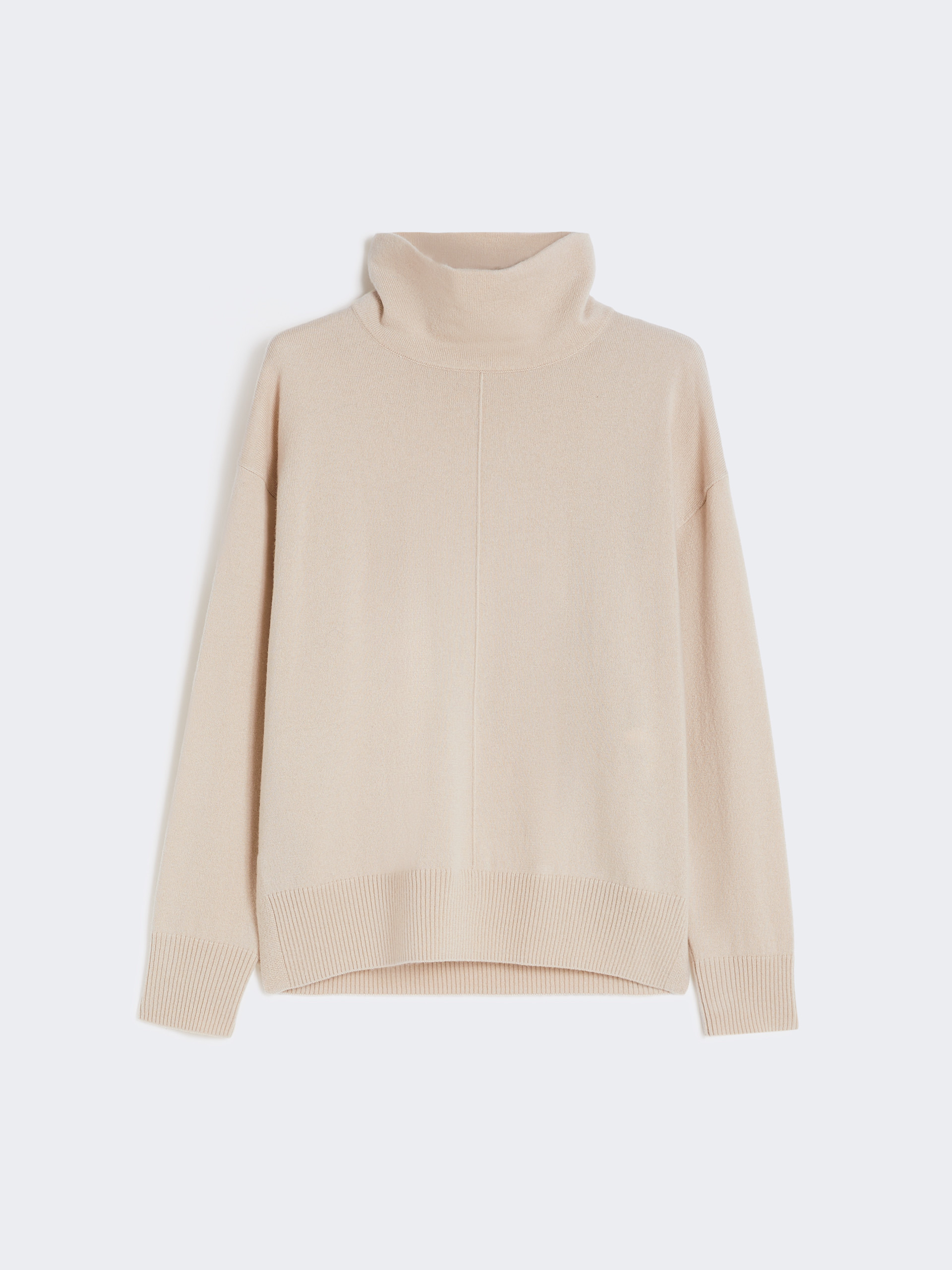 DETAILS Crater-neck jumper featuring a central ribbed motif on the front. Wool and cashmere knit jumper Long sleeves with dropped shoulders Side slits at the hem Hem slightly longer at the back Ribbed trim COMPOSITION AND CARE 80% wool, 20% cashmere. Hand wash cold (40°c max); do not bleach; do not tumble dry; flat drying in the shade; cool iron; professionally dry clean perchloroethylene - mild process; do not wet clean.; iron with a cloth between.; using neutral detergent. Distributed by Max Mara S.r.l., registered office in Reggio Emilia (Italy), Via Giulia Maramotti 4, 42124 (IT)