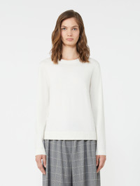 DETAILS Basic jumper with a loose fit. Silk and wool plain-knit jumper Crew neck Long set-in sleeves Ribbed trim COMPOSITION AND CARE 44% silk, 30% wool, 22% polyamide, 4% elastane. Hand wash cold (40°c max); do not bleach; do not tumble dry; flat drying in the shade; cool iron; professionally dry clean perchloroethylene - mild process; do not wet clean.; iron with a cloth between.; using neutral detergent. Distributed by Max Mara S.r.l., registered office in Reggio Emilia (Italy), Via Giulia Maramotti 4, 42124 (IT)