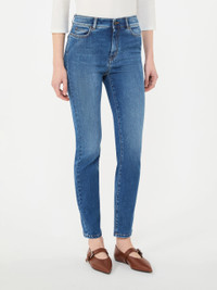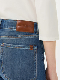 DETAILS Slim-fit 5-pocket jeans with rear yoke detail. - Treatment with "nano bubble" technology - Jeans in super stretch cotton denim - Skinny-fit model - Fly-covered zip and metal tack button fastening - Metallic rivets and belt loops at the waist - Butterfly logo label on the back pocket - Logo label on the waist back COMPOSITION AND CARE 92% cotton, 6% elastomultiester, 2% elastane. Machine wash cold delicate cycle; do not bleach; do not tumble dry; line drying in the shade; cool iron; do not dry clean.; wash the garment while it is fastened.; don’t iron the labels.; turn the articles inside out before washing.; take care when wearing light-coloured clothes or accessories because, with the heat of the body, the denim fabric that comes into contact with them may bleed and stain. be careful while sitting on pale colored surfaces, especially if wet. wash denim items separately and always turned inside out. hang the garment turned inside out by avoiding to expose it to direct sunlight. avoid removing isolated stains.; contains non-textile parts of animal origin. Distributed by Max Mara S.r.l., registered office in Reggio Emilia (Italy), Via Giulia Maramotti 4, 42124 (IT) Collection: Weekend Max Mara Product code: 5181116106020 - WKDSAUNA