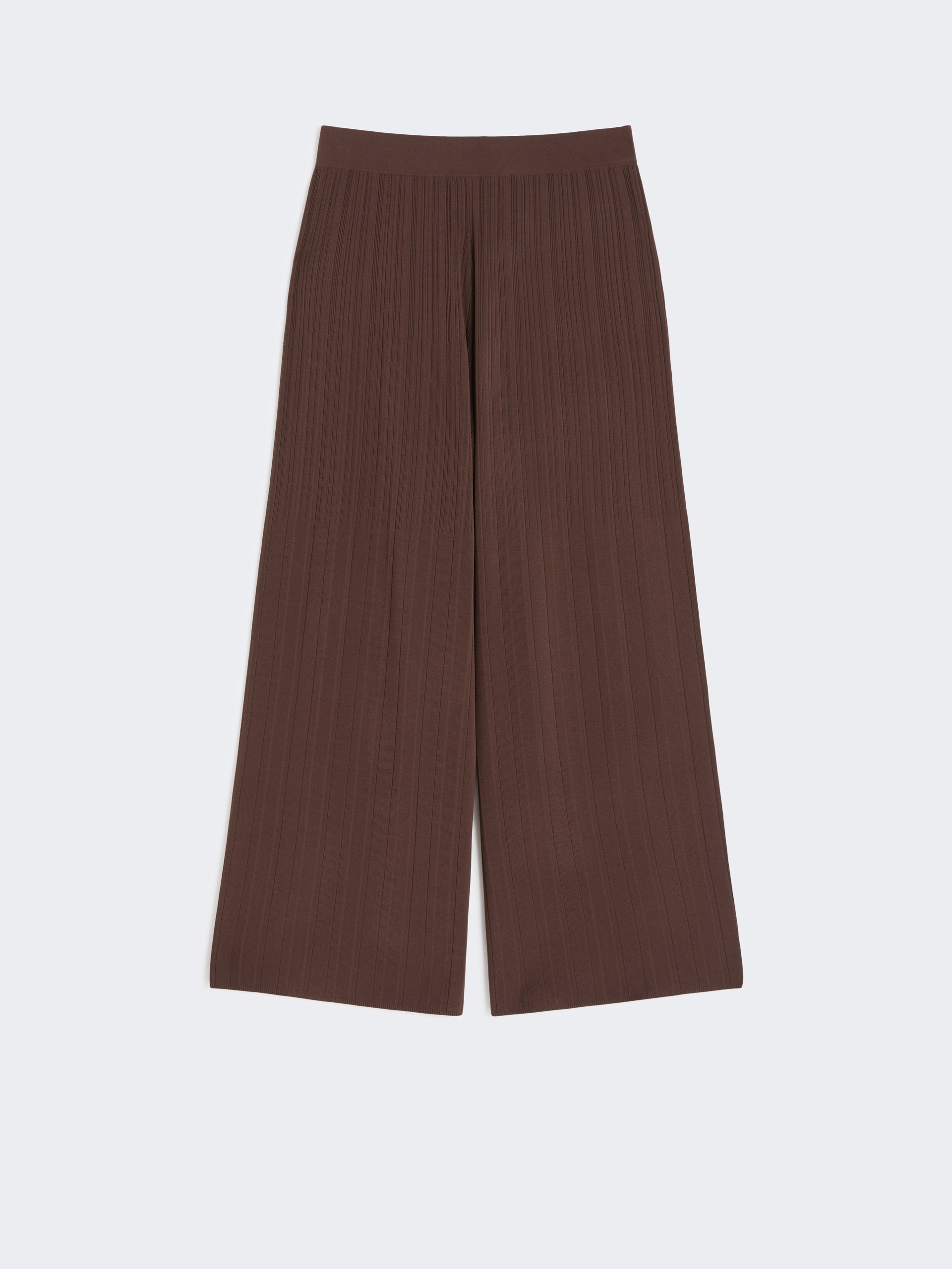 DETAILS Cropped trousers featuring a movement-bestowing plisse-pleated pattern. - Viscose crepe yarn trousers - Relaxed fit - Elasticated waistband - Unlined model COMPOSITION AND CARE 83% viscose, 17% polyester. Hand wash cold; do not bleach; do not tumble dry; flat drying in the shade; cool iron; professionally dry clean perchloroethylene - mild process; do not wet clean.; iron with a cloth between.; using neutral detergent. Distributed by Max Mara S.r.l., registered office in Reggio Emilia (Italy), Via Giulia Maramotti 4, 42124 (IT)