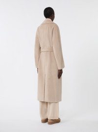 DETAILS Long coat with a robe silhouette and matching belt at the waist. Wool and alpaca blend fabric coat Flared Wide lapel collar Long kimono sleeves Welt pockets on the sides Centre slit on the back Lined COMPOSITION AND CARE Fabric 48% wool, 22% alpaca, 15% polyamide, 15% mohair; lining 50% acetate, 50% viscose. Do not wash; do not bleach; do not tumble dry; cool iron; professionally dry clean perchloroethylene - mild process; do not wet clean. Distributed by Max Mara S.r.l., registered office in Reggio Emilia (Italy), Via Giulia Maramotti 4, 42124 (IT)