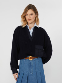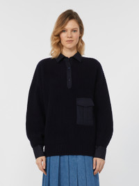 DETAILS Comfort fit pullover featuring a fisherman’s rib knit that gives structure to the texture. Extra-fine wool yarn and carded cashmere pullover Loose fit Polo collar with three mother-of-pearl button fastening Long sleeves with dropped shoulders and cuffs Patch pockets with flap on the front Tone-on-tone wool fabric details COMPOSITION AND CARE Knitted fabric 90% virgin wool, 10% cashmere; with details in 100% wool; lining 100% silk. Hand wash cold (40°c max); do not bleach; do not tumble dry; flat drying in the shade; cool iron; professionally dry clean perchloroethylene - mild process; do not wet clean.; using neutral detergent.; iron with a cloth between.; contains non-textile parts of animal origin. Distributed by Max Mara S.r.l., registered office in Reggio Emilia (Italy), Via Giulia Maramotti 4, 42124 (IT)