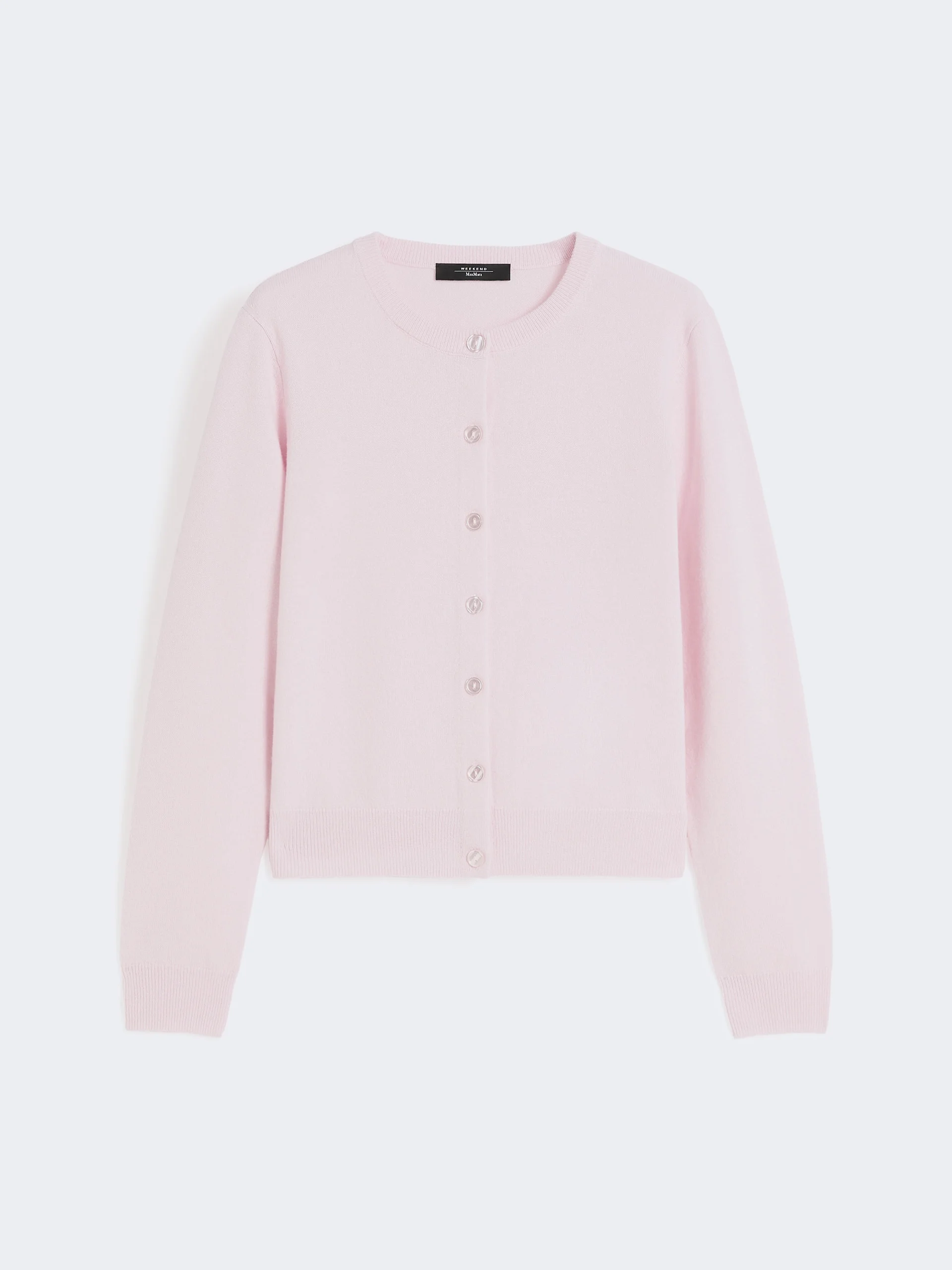 DETAILS Crew neck cardigan with front button closure. - Wool and cashmere yarn cardigan - Relaxed fit and waist length - Long set-in sleeves - Rib-knit trims COMPOSITION AND CARE 80% wool, 20% cashmere. Hand wash cold (40°c max); do not bleach; do not tumble dry; flat drying in the shade; cool iron; professionally dry clean perchloroethylene - mild process; do not wet clean.; iron with a cloth between.; using neutral detergent. Distributed by Max Mara S.r.l., registered office in Reggio Emilia (Italy), Via Giulia Maramotti 4, 42124 (IT) Collection: Weekend Max Mara Product code: 5341026106003 - WKDNEBBIA