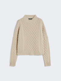 DETAILS Oversized jumper, featuring an Aran-inspired cable knit. Pure wool yarn jumper Boxy fit and medium length Stand collar Long sleeves with dropped shoulders Ribbed edges COMPOSITION AND CARE 100% virgin wool. Hand wash cold (40°c max); do not bleach; do not tumble dry; flat drying in the shade; cool iron; professionally dry clean perchloroethylene - mild process; do not wet clean.; iron with a cloth between.; using neutral detergent. Distributed by Max Mara S.r.l., registered office in Reggio Emilia (Italy), Via Giulia Maramotti 4, 42124 (IT)