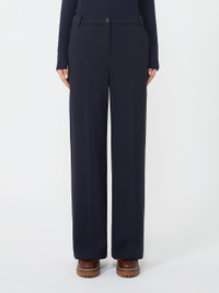 DETAILS Regular-fit, ankle-length trousers. Flannel jersey trousers Straight cut Concealed zip fastening and visible button Slant pockets at the sides Darts at the back of the waist Belt loops and trouser crease COMPOSITION AND CARE 59% polyester, 40% cotton, 1% elastane. Do not wash; do not bleach; do not tumble dry; cool iron; professionally dry clean perchloroethylene - mild process; do not wet clean.; iron with a cloth between.; protect buttons before washing. Distributed by Max Mara S.r.l., registered office in Reggio Emilia (Italy), Via Giulia Maramotti 4, 42124 (IT)