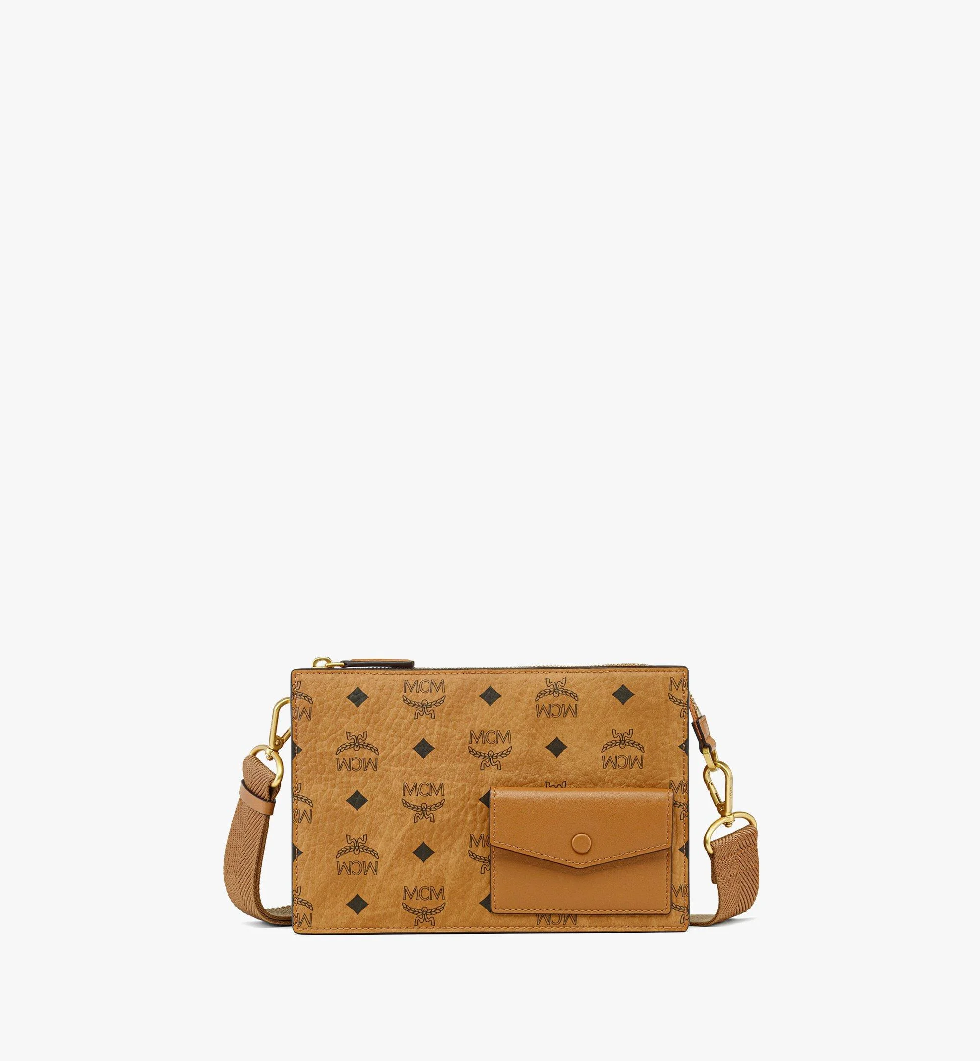 The small Aren crossbody pouch is distinguished by a standing design featuring a unique leather outer card pocket. Emblazoned with the signature Visetos monogram, this accessory in classic cognac is optimized for carriage of daily essentials, devices, and accessories. - Detachable, adjustable herringbone webbing strap - Front flap pocket for IDs and cards - Zip closure - Interior slip pocket - Body: Visetos monogram canvas - Trim: Natural leather - 24k gold-plated brass hardware - Microfiber lining with suede finish - Approximately 1.6 x 8.9 x 5.9 inches - 29.5" to 52" strap length - Made in South Korea