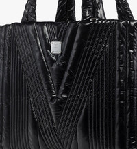 Sumptuous and ultramodern, this large tote bag in Italian nylon is defined by a quilted “M” motif representing Munich — the Bavarian birthplace of the House. Heritage hardware adorns the front of the sleek silhouette in the form of the iconic logo brass plate. - Detachable, adjustable fabric strap - Top handles - Quilted “M” motif - Logo brass plate - Magnetic tab closure - Interior zip pocket - Body: 100% Nylon - Trim: Natural leather - Silver-tone cobalt metal hardware - Cotton twill lining - Approximately 7.1 x 14.2 x 11.8 inches - 28.3" to 50.4" strap length, Handle drop: 4.3" - Made in South Korea