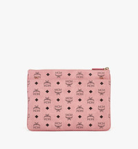 Imagined in serene Soft Pink, this classic Visetos monogram pouch features a spacious cotton twill interior with multiple compartments for valuables. The elegant accessory also boasts an outer snap pocket for swift and secure access to essentials. Carry as a clutch or attach the leather strap for comfortable, crossbody wear. - Approximately 1.0 x 11.8 x 8.7 inches - Strap drop: 23.6" - Detachable, adjustable leather crossbody strap - Rear exterior pocket with hidden snap closure - Top zip closure - Interior pocket and zip compartment - Trim: Natural nappa leather - Body: Visetos monogram coated canvas - 18k gold-plated metal hardware - Cotton twill lining - Made in South Korea Style # MYZAAVI02PZ001