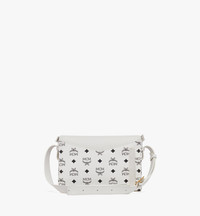 A three-dimensional emanation of the Bavarian diamond, this sculptural shoulder bag features dual zip closures inspired by the angles of the eponymous Munich code. Crowned with Spanish calf leather, the slouched silhouette conforms to the contours of the wearer for heightened comfort. - Approximately 3.9 x 9.4 x 6.3 inches - Strap drop: 21.7” - Adjustable leather shoulder strap - Exterior pocket and zip compartment at back - MCM logo motif - Dual zip closures - Interior zip compartment - Trim: Spanish calfskin leather - Body: Visetos monogram canvas - 24k gold-plated brass hardware - Microfiber lining with suede finish - Made in South Korea Style # MWSEAAK04WT001