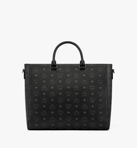 Presented in signature Visetos canvas, the front of this large east-west tote features a geometric leather design inspired by the Bavarian diamonds of Munich. A robust zip closure secures the silhouette, featuring a vast cotton twill interior with three pockets and space for a 16” laptop. - Detachable, adjustable fabric crossbody strap - Leather top handles - Front zip pocket - Laurel logo motif at front - Zip closure - Two interior slip pockets - Interior zip compartment - Fits 16” MacBook Pro - Body: Visetos monogram canvas - Trim: Natural leather - Dark silver-tone cobalt metal hardware - Cotton twill lining - Approximately 5.3 x 15.0 x 12.6 inches - 29.9" to 53.5" strap length, Handle drop: 4.3" - Made in South Korea