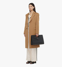 This medium embossed leather tote tog is accented with Spanish calf leather handles inspired by the sharp contours of the Bavarian diamonds. The rectangular silhouette features a pristine microfiber suede interior and is accompanied by an adjustable leather strap for crossbody wear. - Approximately 3.5 x 22.2 x 14.6 inches - 44.7" cm to 48.8" strap length, Handle drop: 2" - Detachable, adjustable leather strap - Calf leather handles - MCM logo motif at front - Zip closure - Interior slip pocket and zip pocket - Trim: Calf nappa leather - Body: Embossed leather - 24k gold-plated brass hardware - Microfiber lining with suede finish - Made in South Korea Style # MWTESAK02BK001