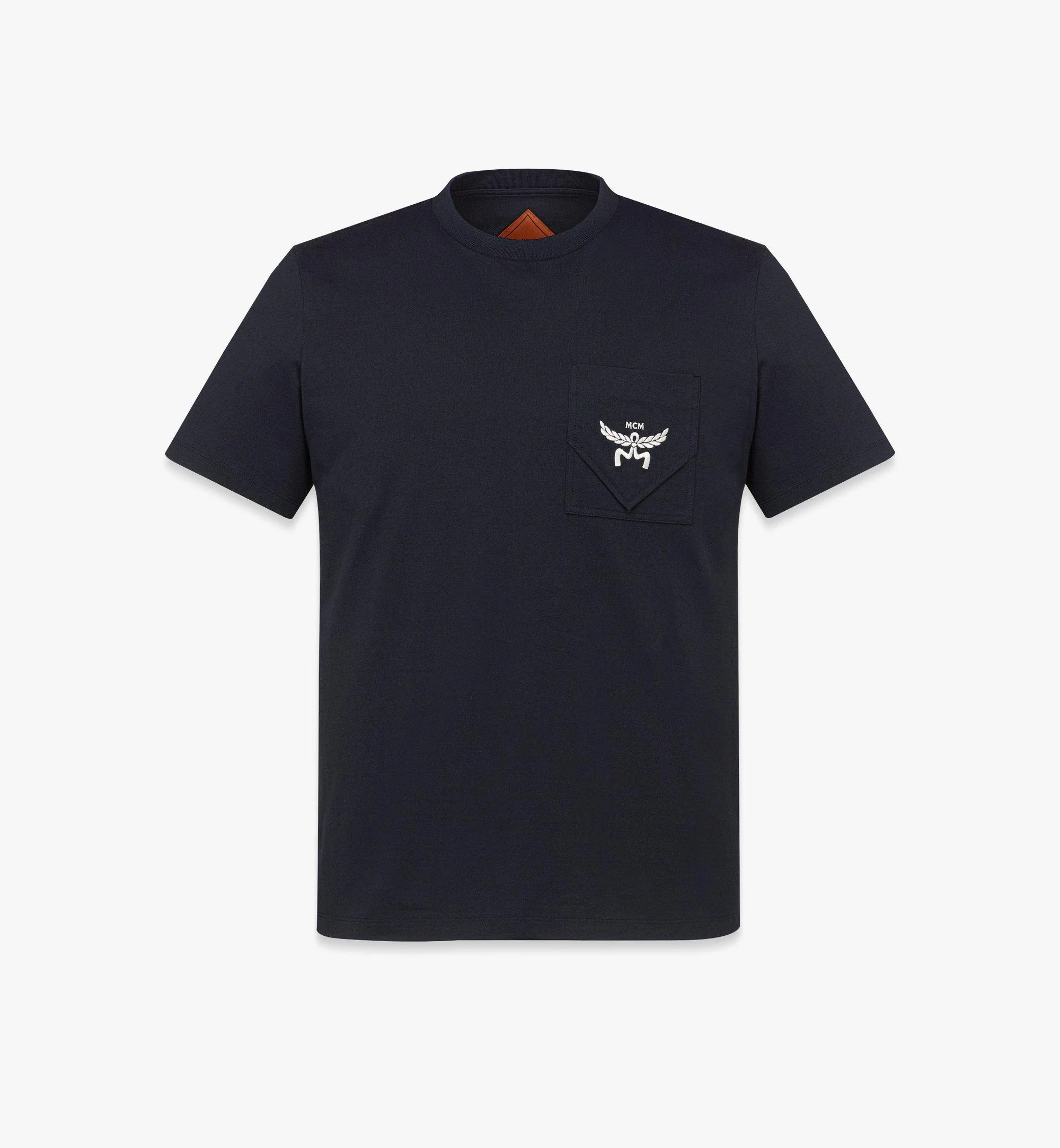 This short sleeve T-shirt features a chest patch pocket embroidered with the triumphant Laurel emblem. The sustainable style features a GOTS-certified organic cotton composition. - Rib knit collar - Chest pocket with MCM logo embroidery - 100% GOTS-Certified Organic Cotton - Regular fit - Hand wash or dry clean. Do not bleach or tumble dry. Iron with press cloth. - Made in South Korea Style # MHTESBC02VD00L
