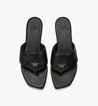 Sculpted from exquisite Italian lambskin leather, these sandals feature a Bavarian diamond-inspired upper garlanded with a gold-tone Laurel emblem. Heightened comfort results from a leather footbed meticulously embossed with the signature MCM logo. - Gold-tone Laurel emblem on upper - Embossed logo on leather footbed - Leather outsole - Body: 100% Lamb Leather - Lining: 100% Lamb Leather - Clean outsole with a soft brush. For the upper, use a slightly wet soft cotton cloth. - Made in Italy Style # MESFSMM05BK036
