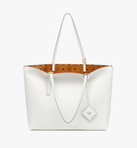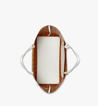Imprinted with the triumphant Laurel emblem, this large Himmel shopper features a Visetos monogram leather lined interior for a signature finish. The silhouette is accompanied by a separate zip pouch and detachable Bavarian diamond logo leather charm. - Approximately 8.3 x 15.7 x 13.4 inches - Handle drop: 11" - Adjustable leather handles - Embossed MCM Laurel logo at front - Detachable Bavarian diamond logo leather hang tag - Removable zip pouch - Body: Embossed leather - 24k gold-plated brass hardware - Leather lining with Visetos monogram print - Made in Italy Style # MWPESAC05WG001