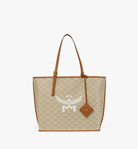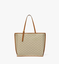 A triumph of MCM craftsmanship, the noble laurel leaves form the Lauretos monogram atop this medium-sized shopper. Nappa leather accents, such as the handles and detachable Bavarian diamond hang tag inspired by a storied travel heritage, complement the silhouette. The accompanying monogram pouch serves as a standalone purse for short trips. - Approximately 6.7 x 13.8 x 12.6 inches - Handle drop: 9.8” - Adjustable leather handles - Detachable Bavarian diamond leather hang tag - Removable monogram pouch - Trim: Nappa leather - Body: Lauretos monogram canvas - 24k gold-plated brass hardware - Cotton-linen lining - Store your item inside its protective dust bag in a cool, dry place away from direct sunlight and bright lights. Avoid continuous friction. Never clean with soap or solvent. Take care to not stain or wet the leather materials. Dry with a lint-free, light-colored absorbent cloth. - Made in South Korea Style # MWPESAC03I9001