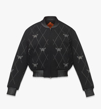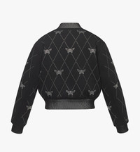 Emblematic of the Munich House, the stellar splendor of the signature laurels is captured through crystal hotfix embellishments. This oversized bomber jacket is finished with Lurex rib knit details, further complementing the brilliance of the all-over monogram motif. - Lauretos monogram crystal embellishments - Zip closure - Front pockets - Rib knit Lurex trim - 70% Polyester, 25% Cotton, 5% Spandex - Monogram jacquard lining - Oversized fit - Hand wash. Do not dry clean, bleach, or tumble dry. Iron with press cloth. - Made in South Korea Style # MFJFSMM04BK00M
