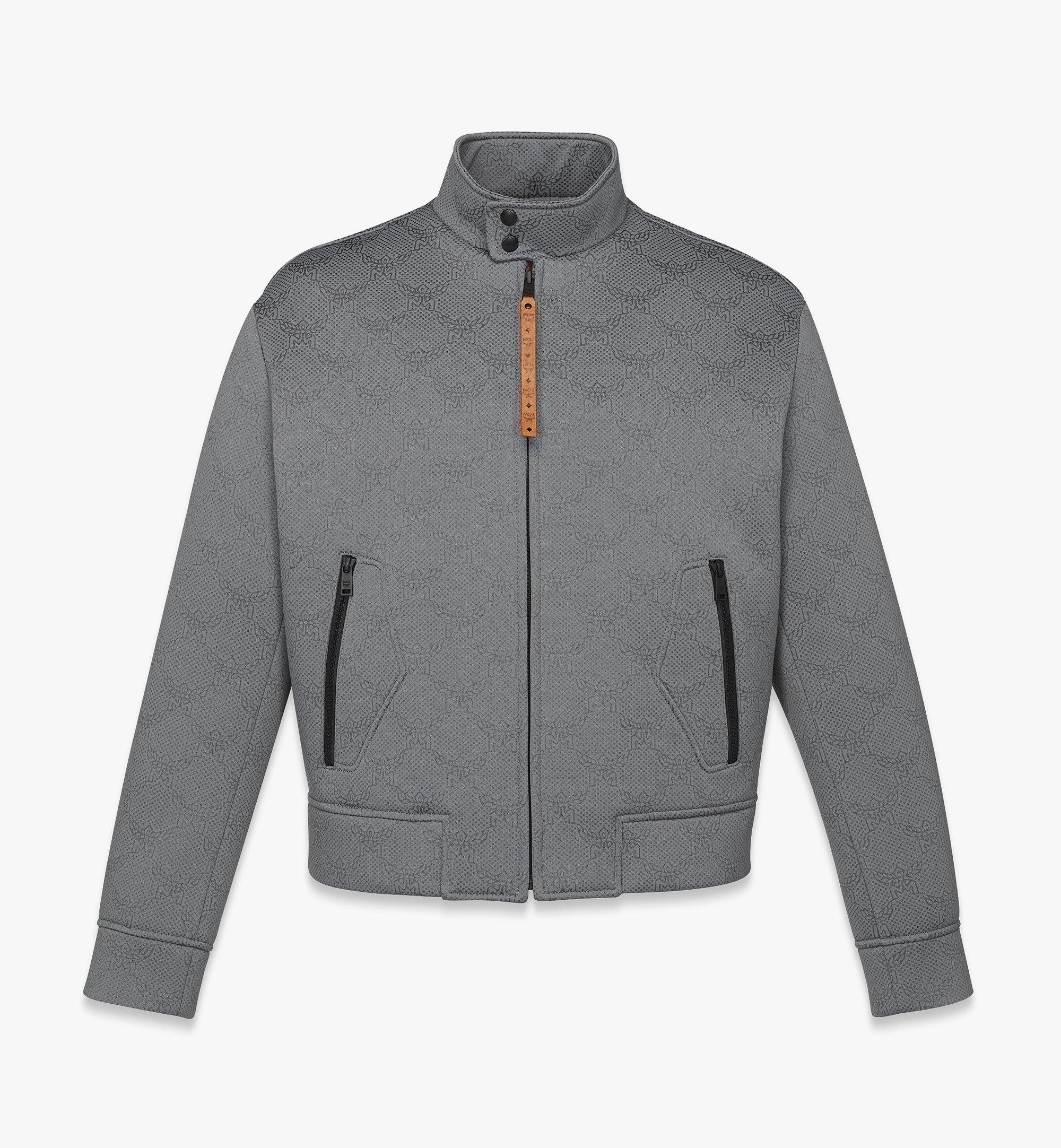 Knitted from soft Italian neoprene, this jacquard jacket is wreathed in the signature laurels of the Munich House. Classic codes enrich the oversized silhouette through a Visetos monogram printed zip puller and Bavarian diamond-inspired front pockets. - Lauretos monogram motif - Stand collar with logo-engraved metal snap hardware - Zip closure with Visetos monogram puller - Front zip pockets - Body: Italian neoprene jacquard - Oversized fit - Dry clean only. Do not bleach or tumble dry. Iron with press cloth. Do not fold as wrinkles may take shape. Hanger packing recommended. - Made in South Korea Style # MHJFSMM07ED00L