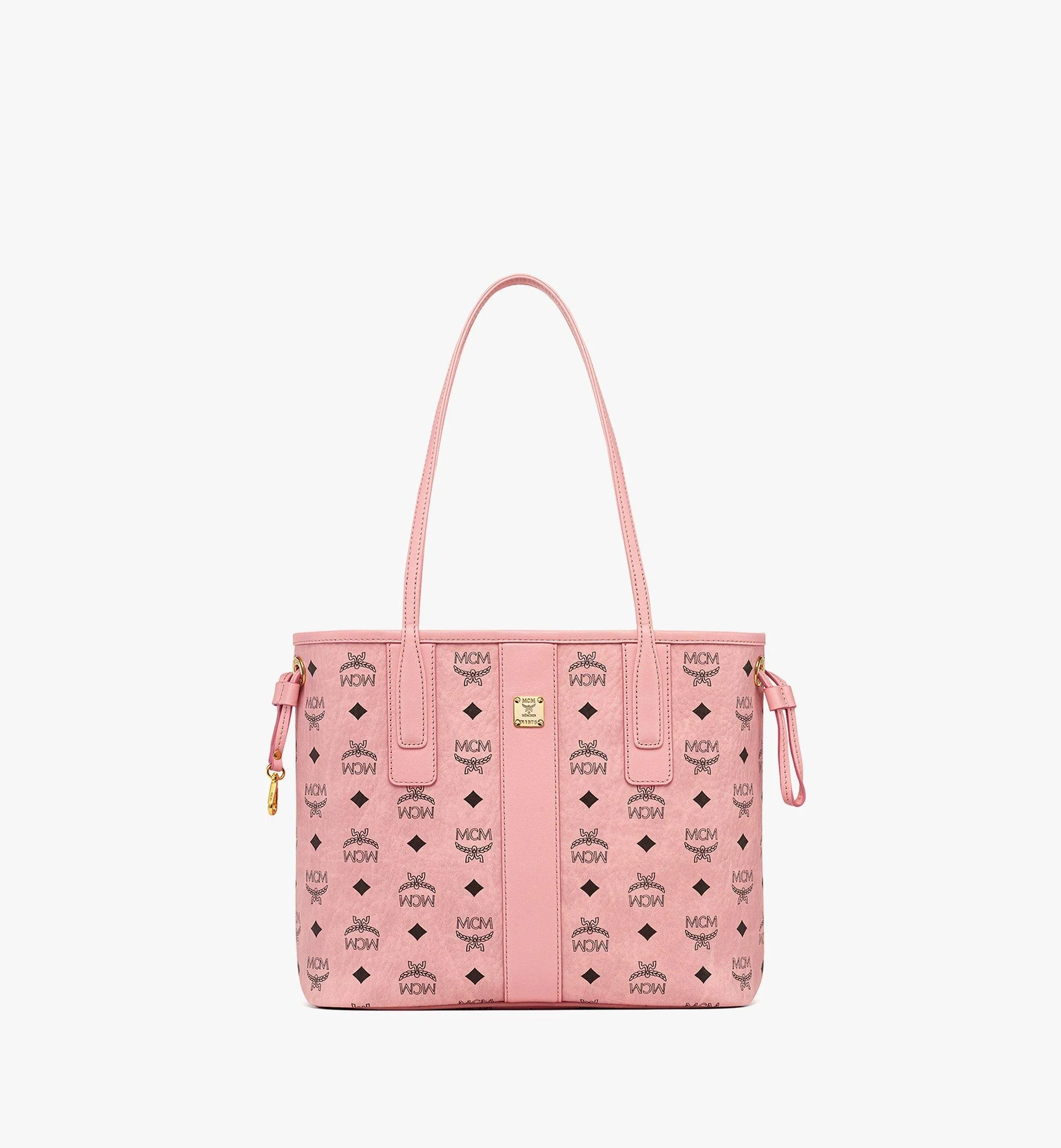 Serene sophistication in Soft Pink. The signature Liz shopper is a celebrated cosmopolitan companion accompanied by a matching monogram pouch for greater versatility. - Approximately 5.5 x 11.4 x 9.8 inches - Handle drop: 9.4" - Leather top handles - MCM logo plate - Adjustable leather drawstring fastening at sides - Removable Visetos pouch with strap - Protective leather feet - Trim: Natural nappa leather - Body: Visetos monogram canvas - 18k gold-plated metal hardware - Fabric lining - Made in South Korea Style # MWPFSLR07PZ001