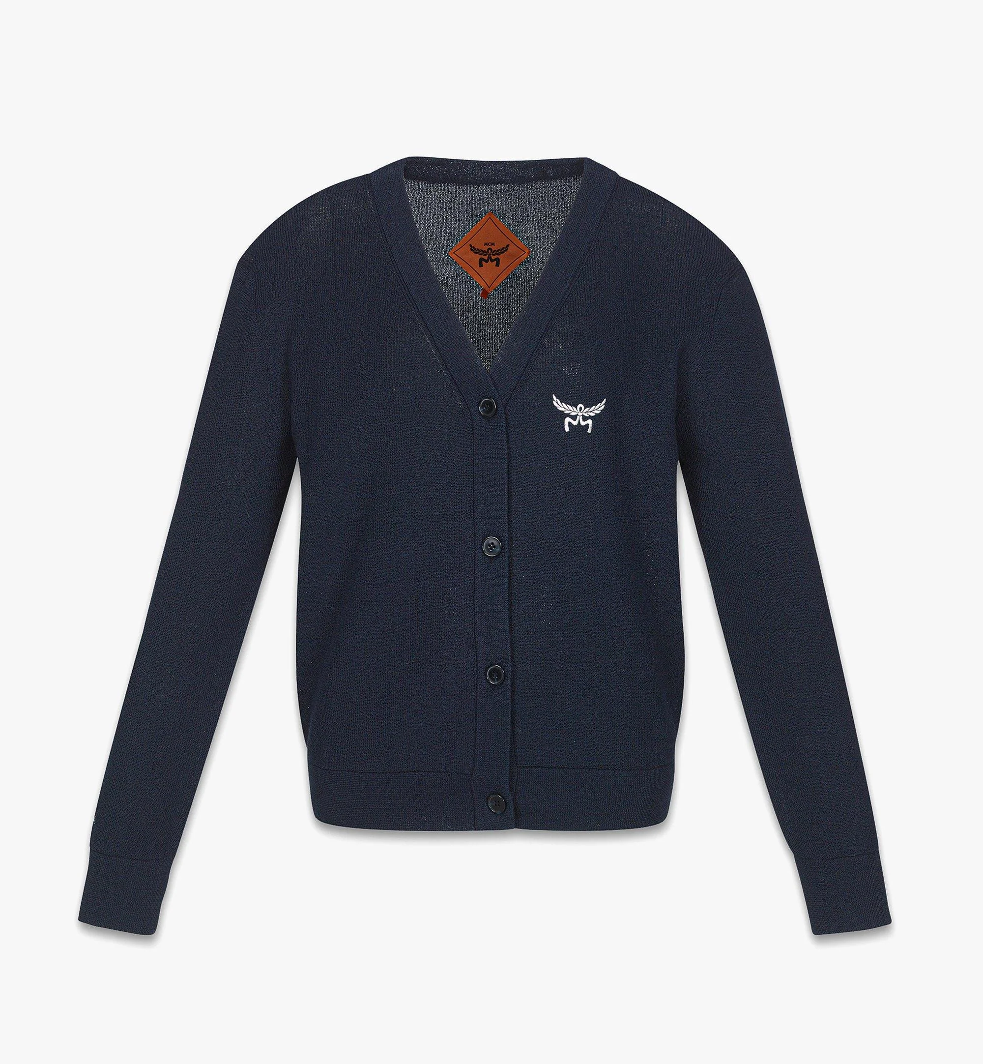 Featuring a cropped length with an oversized fit, this lightweight V-neck cardigan is knitted from an innovative blend of polyester and ramie — a natural, renewable, and biodegradable plant fiber. The classic codes of the Munich House are present through Laurel logo satin embroidery on the chest and “MCM” logo embroidery on the right cuff. - Button closure - Laurel logo satin embroidery at chest - MCM logo embroidery near right sleeve cuff - 77% Polyester, 23% Ramie - Cropped, oversized fit - Female model is 178cm / 5'8" tall and wears size S. - Made in South Korea
