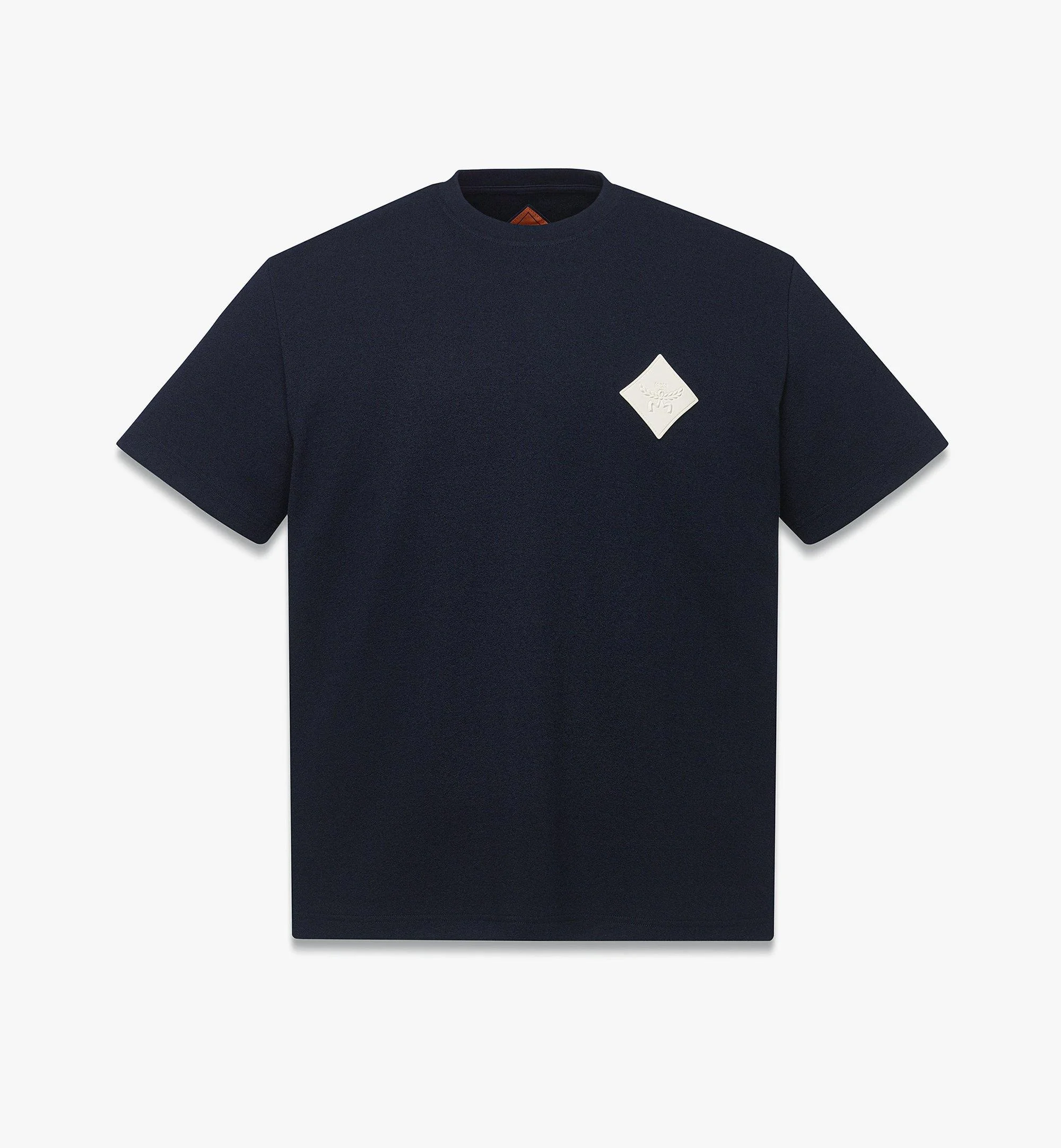 Knitted from Japanese boucle, this oversized short sleeve T-shirt is embellished with a Laurel logo patch inspired by the Bavarian diamonds of Munich. The soft stretch jersey fabric results in exquisite comfort. - Logo-embossed faux leather diamond patch - Rib knit collar - 49% Polyester, 42% Cotton, 9% Polyamide - Oversized fit - Hand wash or dry clean. Do not bleach or tumble dry. Pilling occurs naturally with friction. - Made in South Korea Style # MHTESMM02VC00L