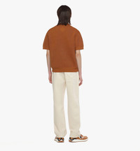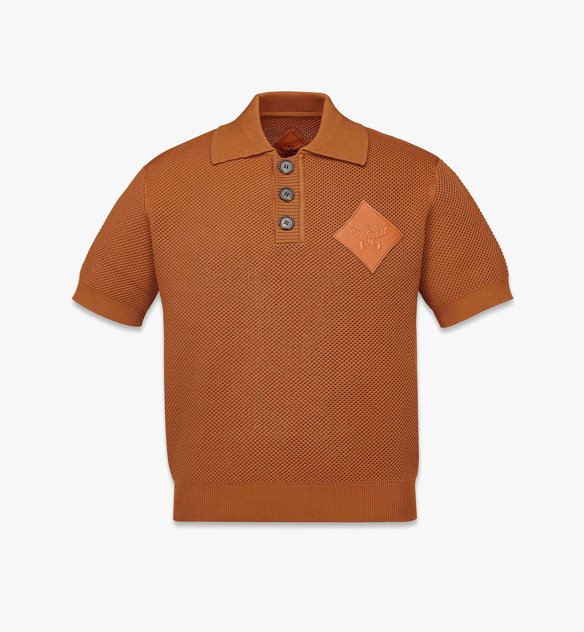 This textured open-knit unisex polo incorporates the signature codes of MCM. The Bavarian diamonds of Munich are represented through a logo-embossed faux leather patch at the chest and a geometric stitch pattern on the back of the neck. - Rib knit collar, cuffs, and hem - Logo-embossed faux leather diamond patch at chest - Recycled faux horn button closure - Bavarian diamond stitch motif at back of neck - 100% Polyester - Oversized fit - Made in South Korea