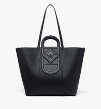 Sculpted from Italian calf leather, the extra-large Mode Travia tote bag is embellished with the sculptural aesthetic of its signature logo-embossed leather handles. This epic showcase of MCM craftsmanship is accompanied by a detachable pouch for greater versatility. - Approximately 7.5 x 16.1 x 14.2 inches - Strap drop: 13.4", Handle drop: 2.4" - Leather shoulder straps - Logo-embossed leather handles - Magnetic tab closure - Detachable zip pouch - Two interior pockets - Body: Calf nappa leather - 24k gold-plated brass hardware - Microfiber lining with suede finish - Made in Italy Style # MWTEALD01BK001