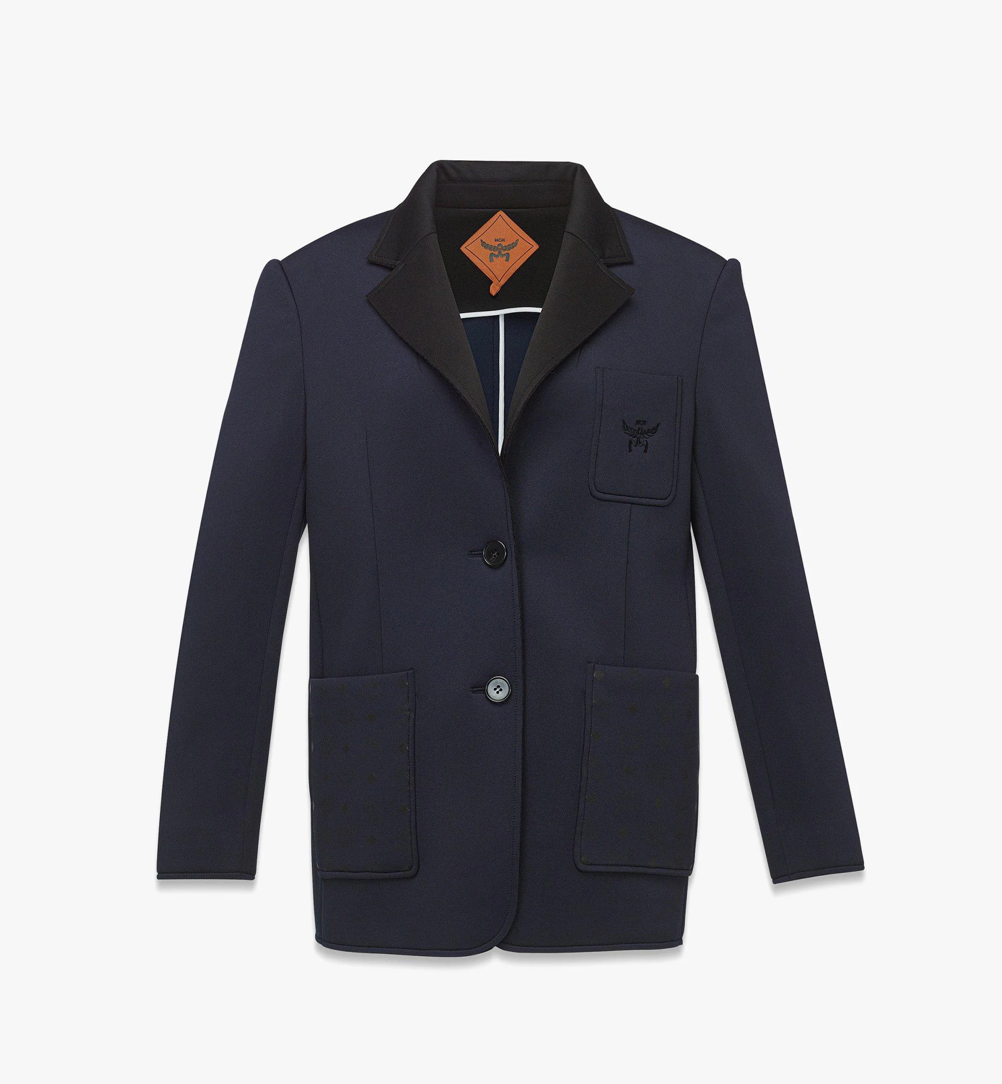 Knitted from a duet of differing neoprene fabrics, this single-breasted jacket continues the theme of variance through a chest pocket with Laurel logo embroidery and front patch pockets printed with the signature Visetos monogram. Padded shoulders lend an impactful aesthetic to the feminine silhouette. - Single-breasted - Notch lapels - Padded shoulders - Button closure - Chest pocket with Laurel logo embroidery - Front patch pockets with Visetos silicone print - 93% Polyester, 7% Polyurethane - Twill lining - Comfortable fit - Made in South Korea