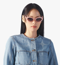 Defined by elegant curves, these oval sunglasses are a vision of contemporary sophistication featuring a light translucent pink frame. Deep gold-tone hardware enriches the temples in the form of the classic “MCM” logo in tandem with Bavarian diamond metal studs. - Lens-Bridge-Temple measurements: 53-16-145 mm - MCM logo hardware on temples - Bavarian diamond metal stud on temple tip - Lens color: Brown Pink Gradient - Frame color: Milky Light Pink - Logo-embossed pouch case - Acetate construction - Made in China