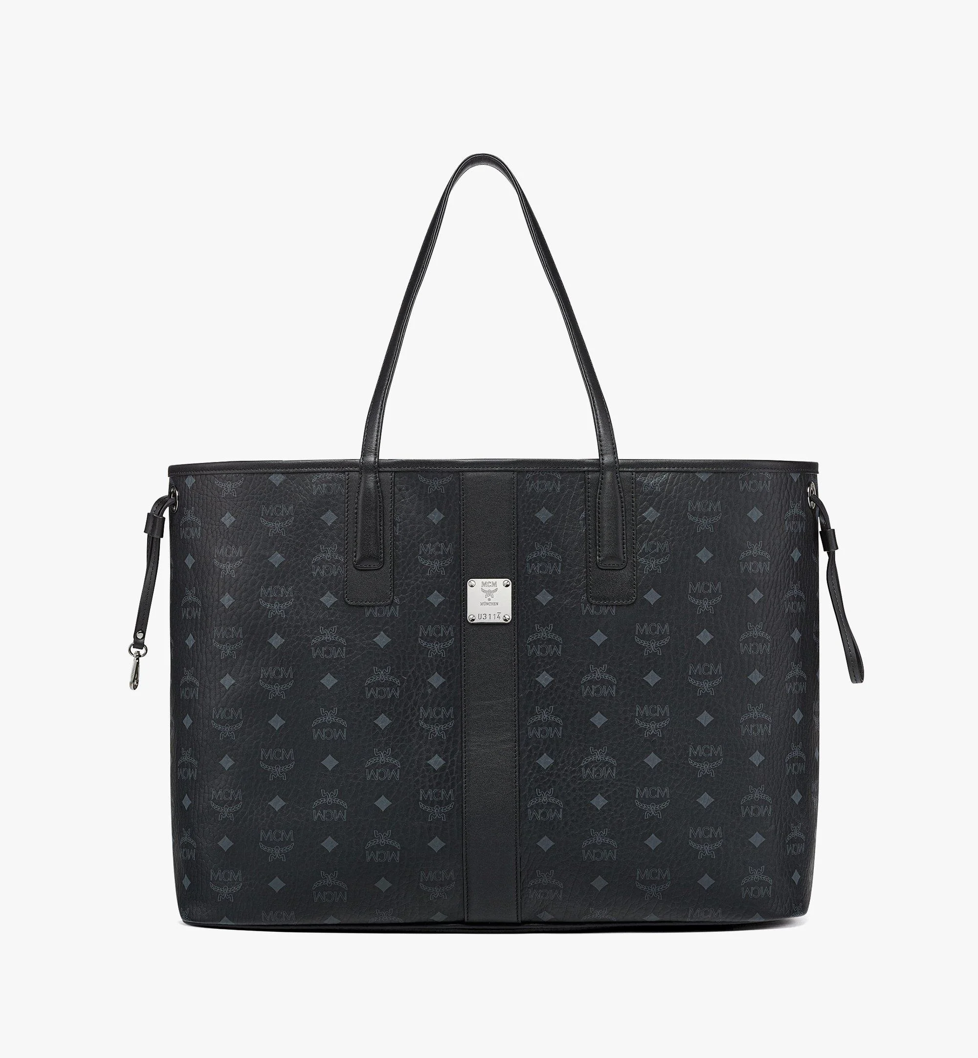 Two signature looks in one everyday icon. Crafted from classic Visetos and nappa leather, the large Liz shopper can be reversed to show off the hypnotic Cubic monogram pattern. Furthermore, leather drawstrings expand and contract the lightweight silhouette to match the dynamic needs of the modern individual. Greater versatility arrives in the form of a removable zip pouch, which thrives as a standalone purse on short trips. - Approximately 7.9 x 18.1 x 13.0 inches - Handle drop: 9.5” - Reversible design - Removable Visetos zip pouch with leather shoulder strap - Leather top handles - MCM logo plate on front - Protective leather feet - Nappa leather trim - Visetos monogram coated canvas - Dark cobalt metal hardware - Cubic monogram cotton canvas lining - Made in South Korea Style # MWPCSVI02BK001