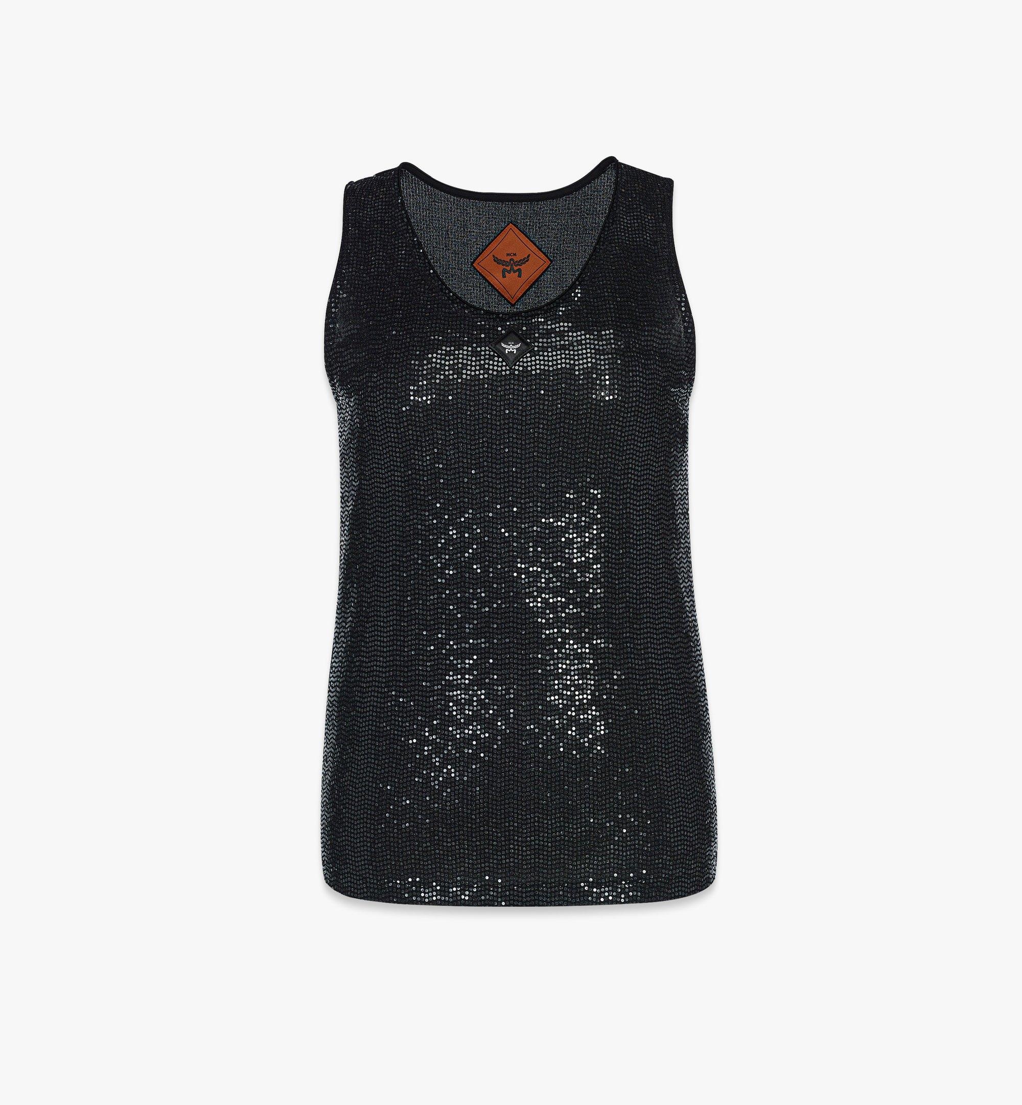 Channeling the glamour of the Golden Age of Munich, this slim fit tank top features sequin embellishments for a dynamic shimmer. Further referencing our German heritage, the Bavarian diamond inspires the logo-embossed patch at the chest of the silhouette. - Sequin embellishments - Logo-embossed faux leather diamond patch at chest - 87% Polyamide, 8% Metallic Fiber, 5% Elastane - Slim fit - Hand wash. Do not dry clean. Do not bleach or tumble dry. - Made in South Korea Style # MFTEAMM05BK00L