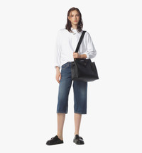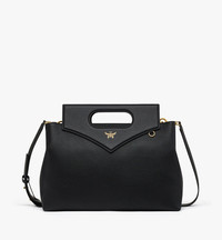 A contemporary revival of an archival MCM silhouette. The Soft Diamond tote bag draws its name from the supple quality of its grained leather body as well as the Bavarian diamond-inspired design of its calf leather handles. The accompanying leather strap allows for hands-free wear. - Approximately 5.1 x 14.6 x 9.4 inches - 37" to 41.7" strap length, Handle drop: 1.8" - Removable, adjustable leather strap - Calf leather handles - Embossed MCM logo motif - D-ring detail for charms and accessories - Zip closure - Interior pocket and zip compartment - Trim: Calf nappa leather - Body: Embossed leather - 24k gold-plated brass hardware - Made in Italy Style # MWTEAAK01BK001
