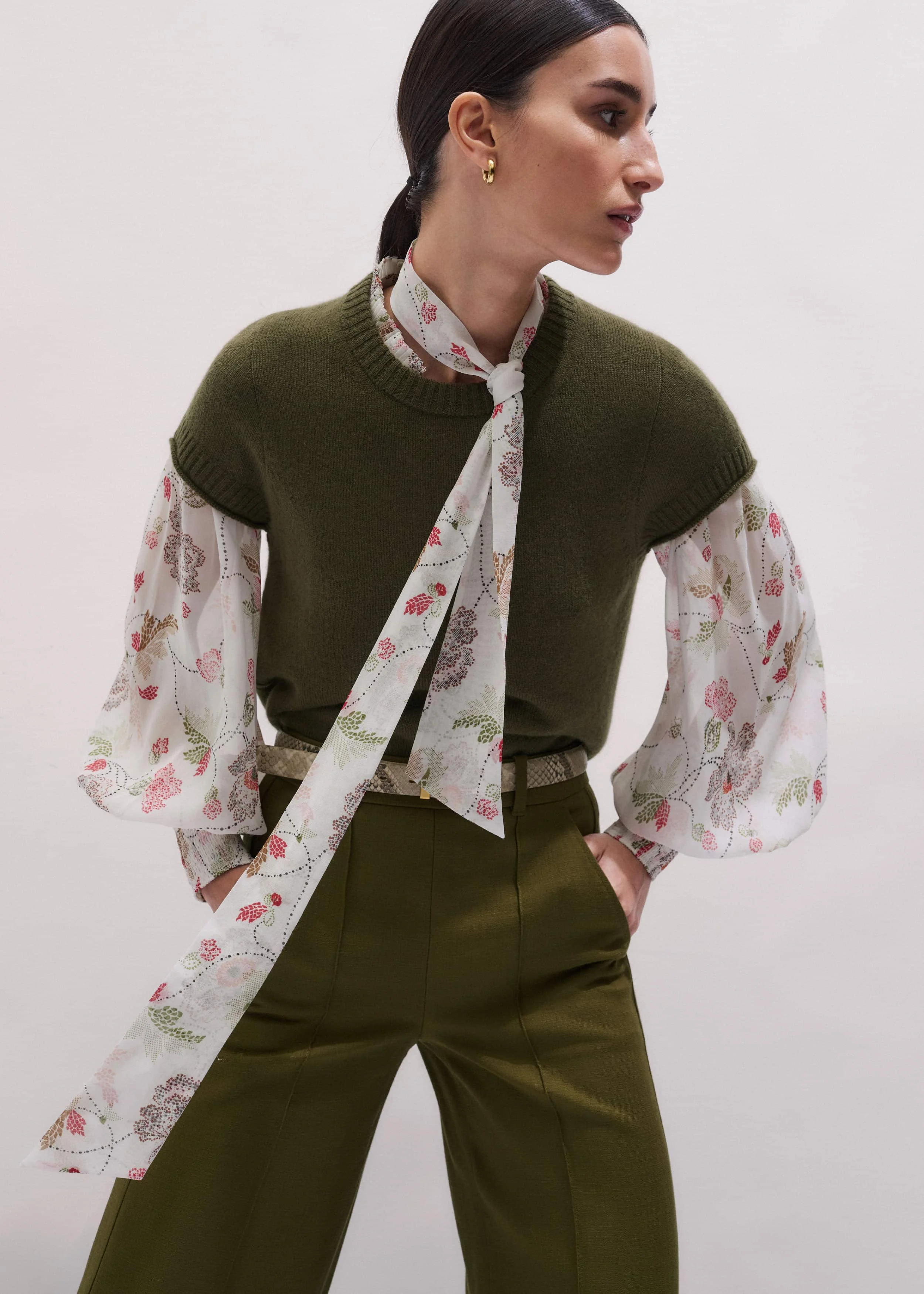 The color to covet, this iteration of our baby tee spotlights an Olive Green hue, a key motif across this season's collection for outfit-building ease. It’s made from naturally breathable cashmere for transeasonal versatility. FIT Shrunken cropped fit Crew neckline Set-in armhole position Short sleeves Cropped body length Level hem MODEL WEARS Model is a US size 4, wearing a size S Model height is 5'8"" / 173cm COMPOSITION 100% Cashmere Crafted from naturally breathable and luxurious pure cashmere, knitted in a plain stitch with a soft hand feel.