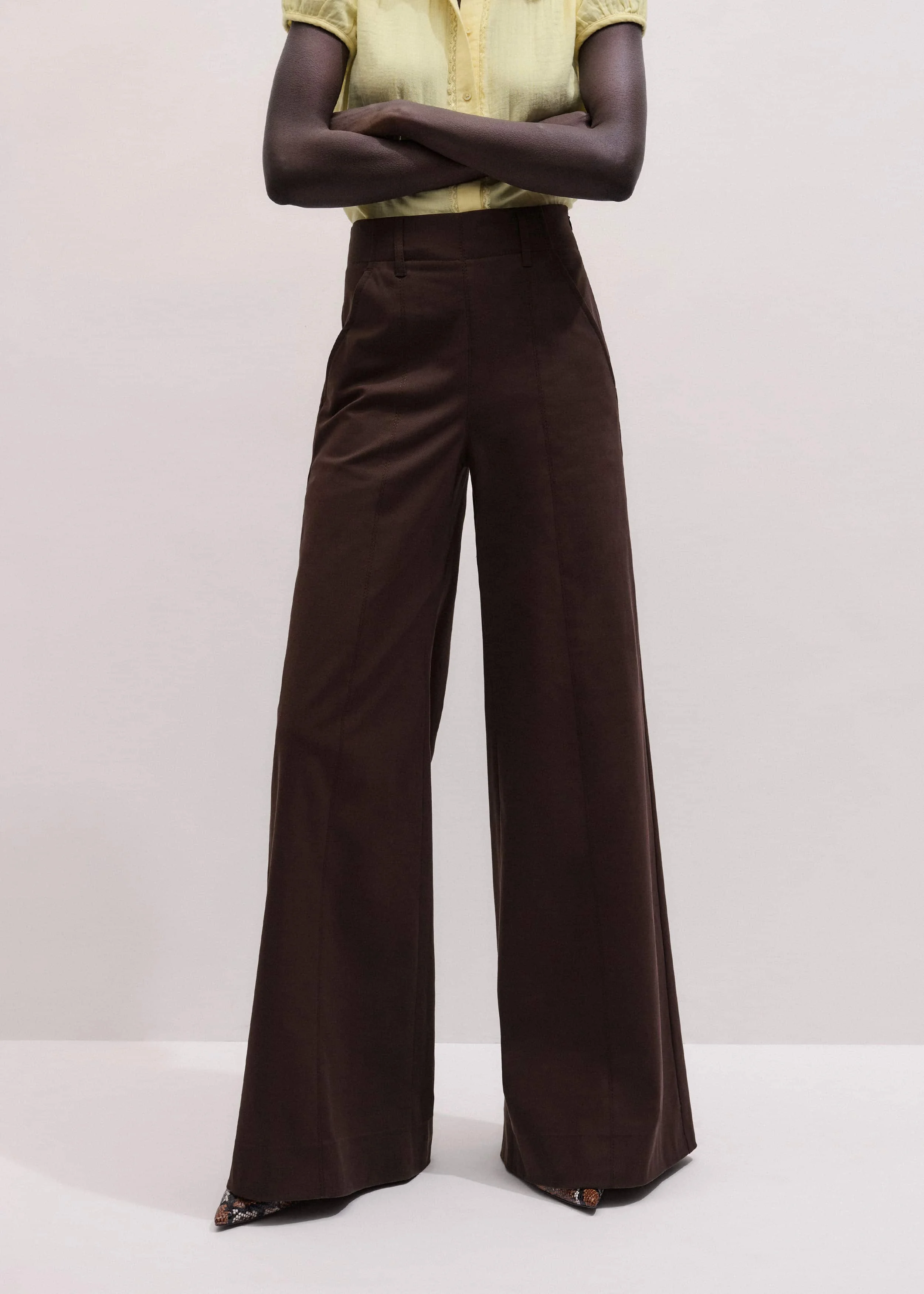 The wide-leg pant is our bread + butter. This season, it’s rendered in a Cocoa Brown hue and soft cotton blend. It has a smooth fit at the hips and a wide, fluid cut through the legs for a flattering drape. Choose between the short and regular length. FIT Wide leg Full length High waisted Functional pockets Side zip fastening Clever belt loop construction Available in two different lengths MODEL WEARS Model is a US size 4, wearing a size 4 Model height is 5'10"" / 178cm Fits true to size COMPOSITION Main Fabric: 58% Cotton, 37% TENCEL™ Modal, 5% Elastane Pocket Lining: 100% Recycled Polyester Crafted from cotton-blend twill with a smooth feel and good stretch.
