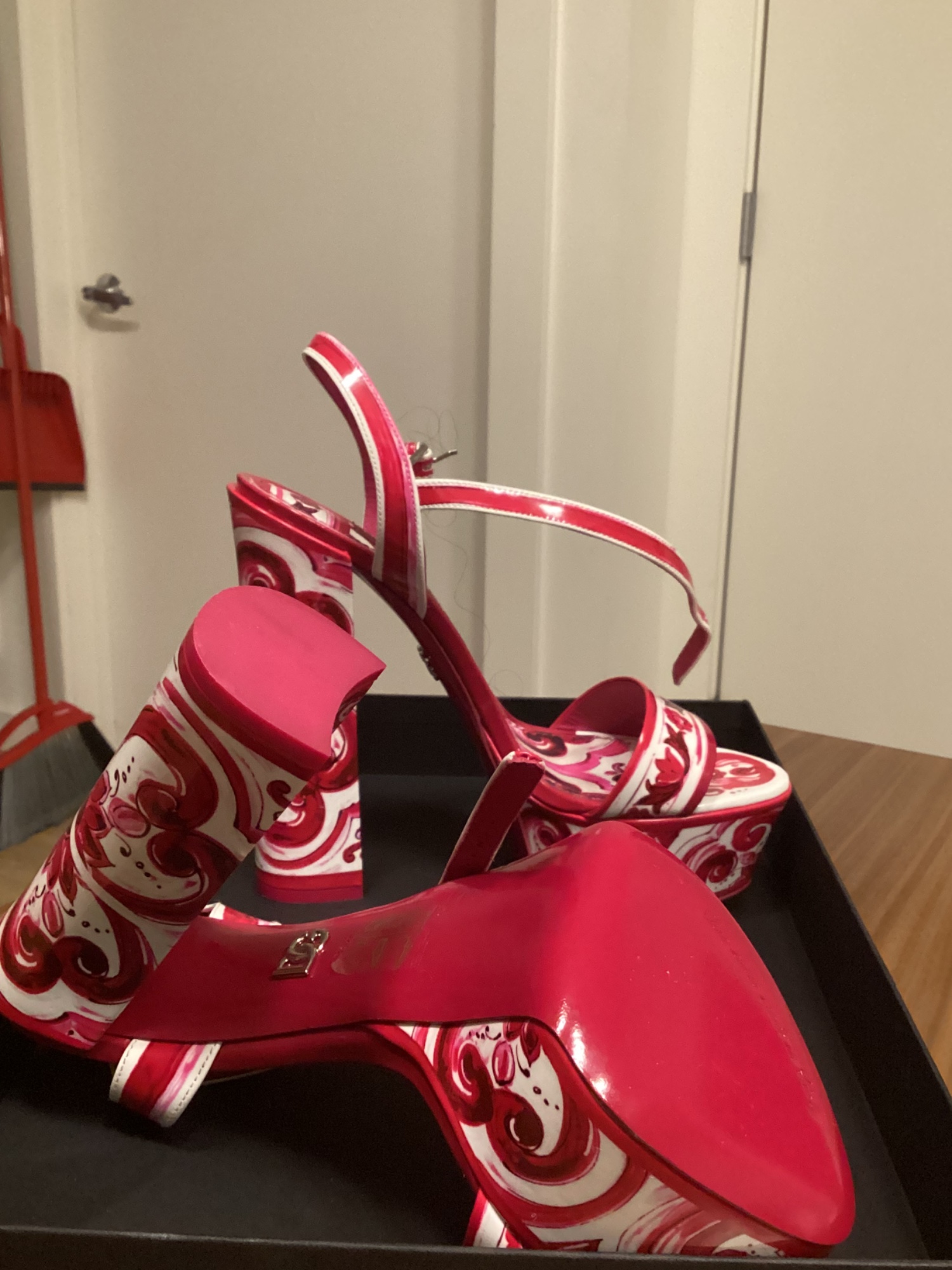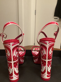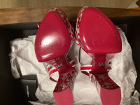 I actually never wore these so technically brand new, I did try them on a few times because I was in denial they are too small for my wide feet. Not wide foot friendly I would size up if I were you. But they are a beautifullllll shoe