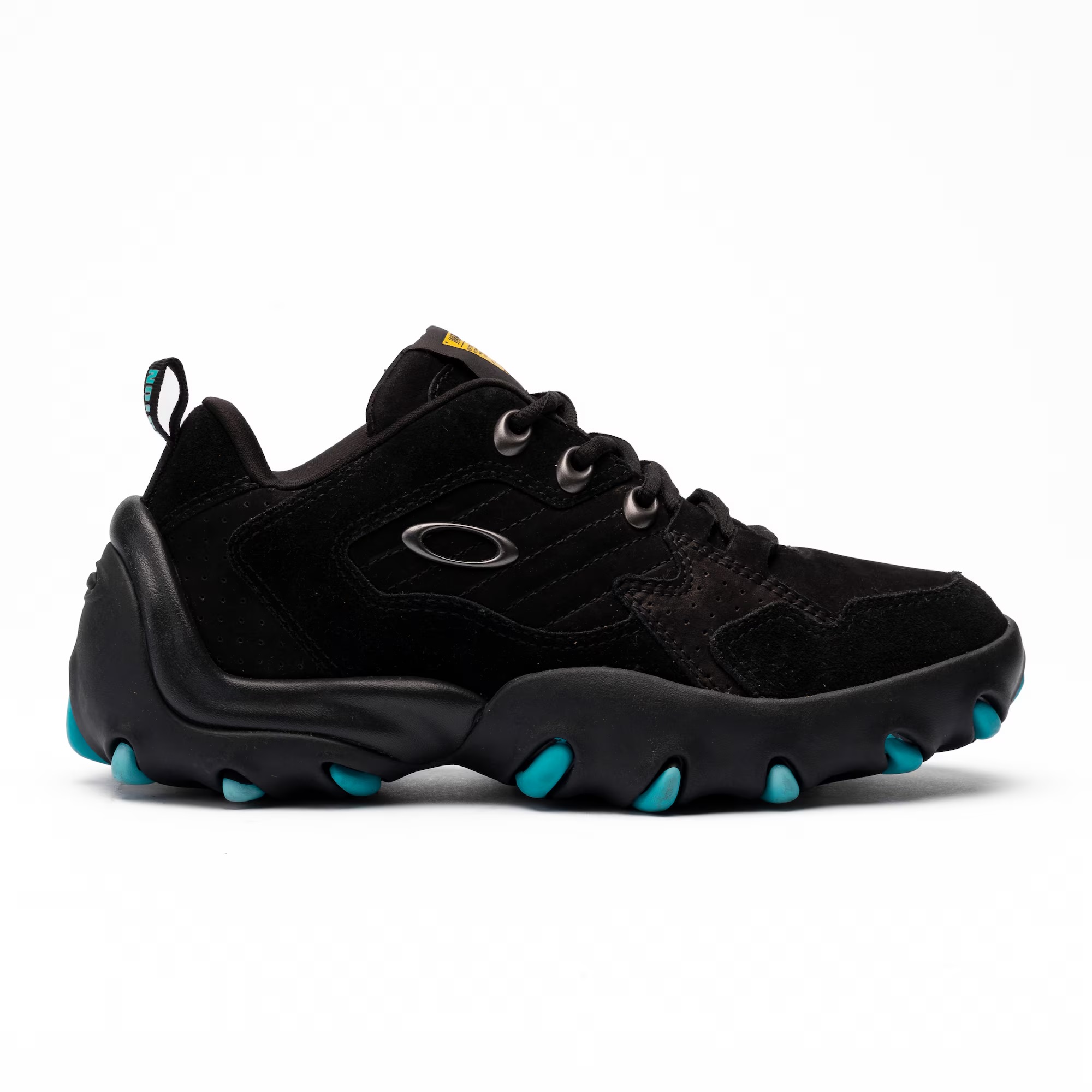 Oakley Men's Teeth Noise Sneakers - Black + Light Blue CODE: FOF100546-01K The Teeth Noise is the latest addition to our iconic Teeth family. This reinterpretation features a touch of sophistication with its high-quality suede finish, and the metal logo adds a touch of ruggedness to the design. The Teeth Noise maintains the tradition of durability and style that the Teeth family is known for, while adding a modern and even more aggressive touch. It is the perfect choice for those who want to stand out with a unique and contemporary look.