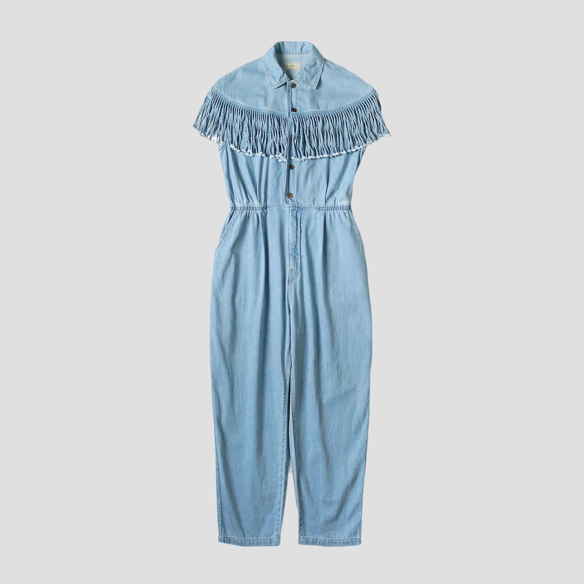 *100% Cotton *5.5oz Denim *No-Sleeves *Elastic Waist *2 Back Pockets *Made in Japan