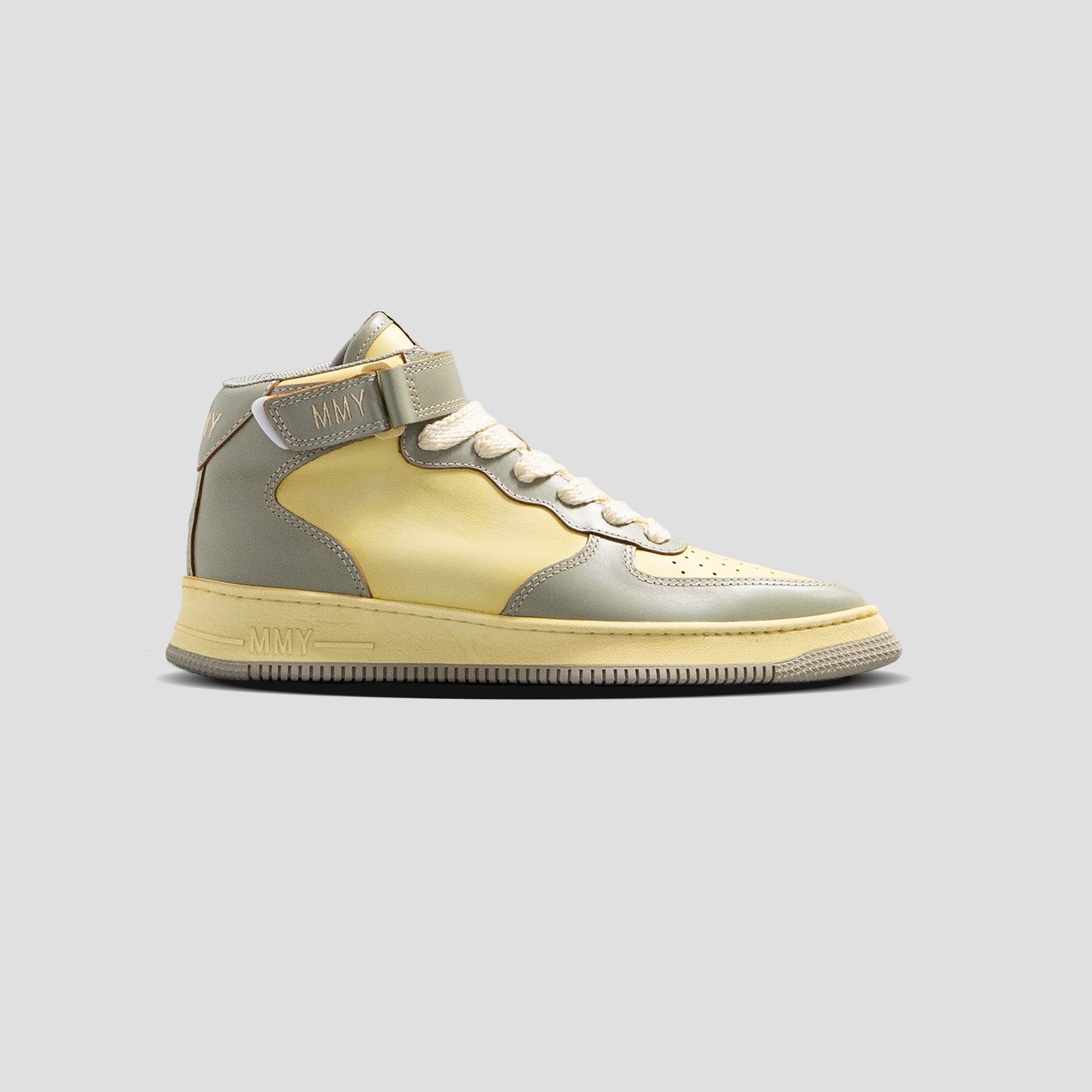 *Rosy OG Sole Mid-Top Sneakers *Leather upper in Gray and White colorways *Pointy toe *Lace-up closure *Padded collar *Brand embroidery on lace front and heel counter *Branded shoes tongue *Material: Leather, Rubber