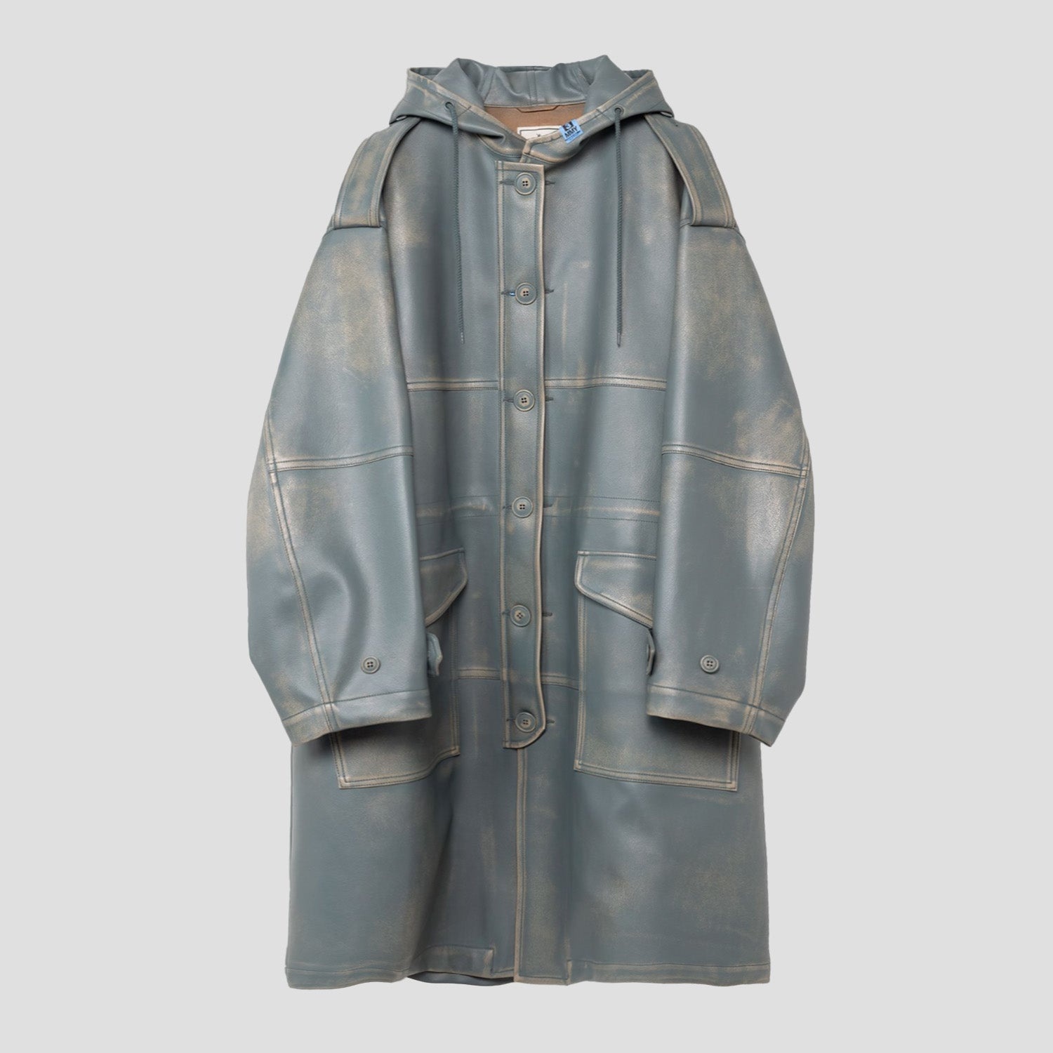 *Surface - 100% PVC / Base - 65% Polyester, 35% Rayon *Front Button-up *Water-repellent *2 Hand Pockets *Oversized *Mad in Japan